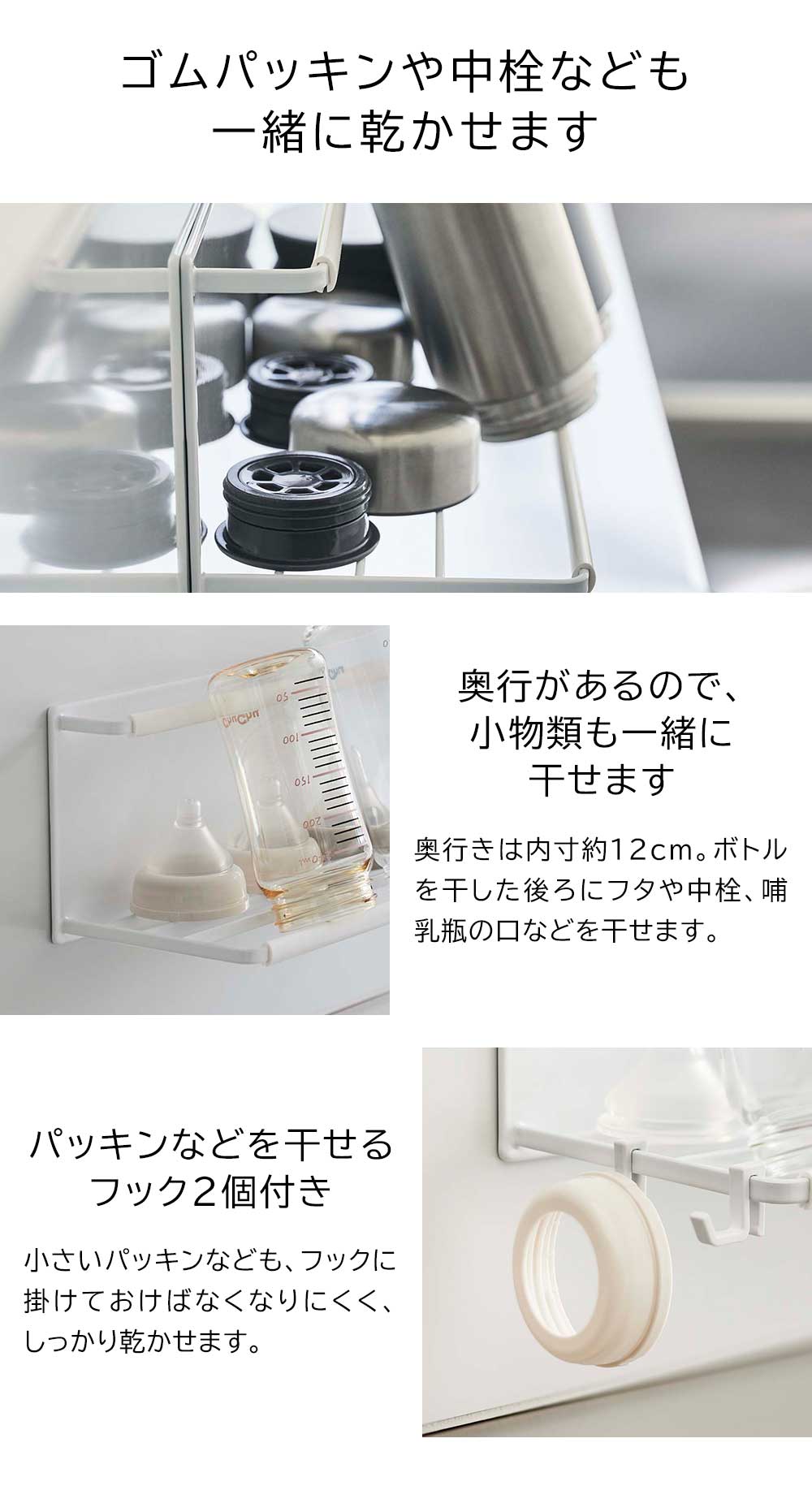 水筒・ジャグから哺乳瓶まで エコの観点から水筒を持ち歩く事が増えていますが、洗った後の干す場所にお困りではありませんか?こちらのホルダーならマグネット式で簡単に壁面にボトルを乾かすスペースが作れます。家族分のボトルを干したり、ジャグなどの大きい物も収納できるワイドサイズです。哺乳瓶・ペットボトル、マグボトルを干すなど、使い方は色々。奥行きがあるのでパッキンや中栓など細々した小物も一緒に干せてゴチャつきません。 ![]() ![]() ![]() ![]() ![]() ![]() ![]() ![]() ![]() ![]() ![]() |