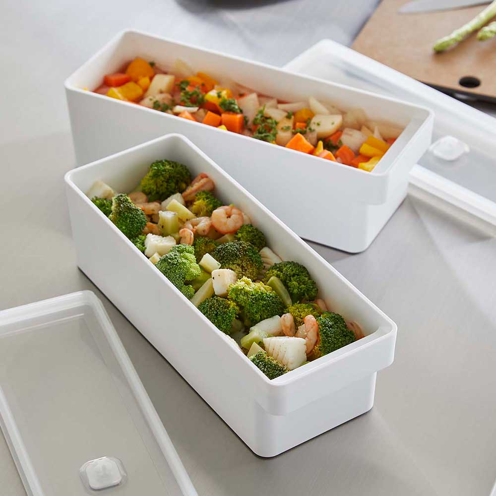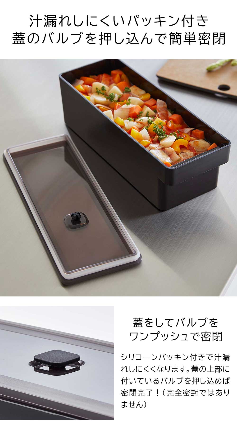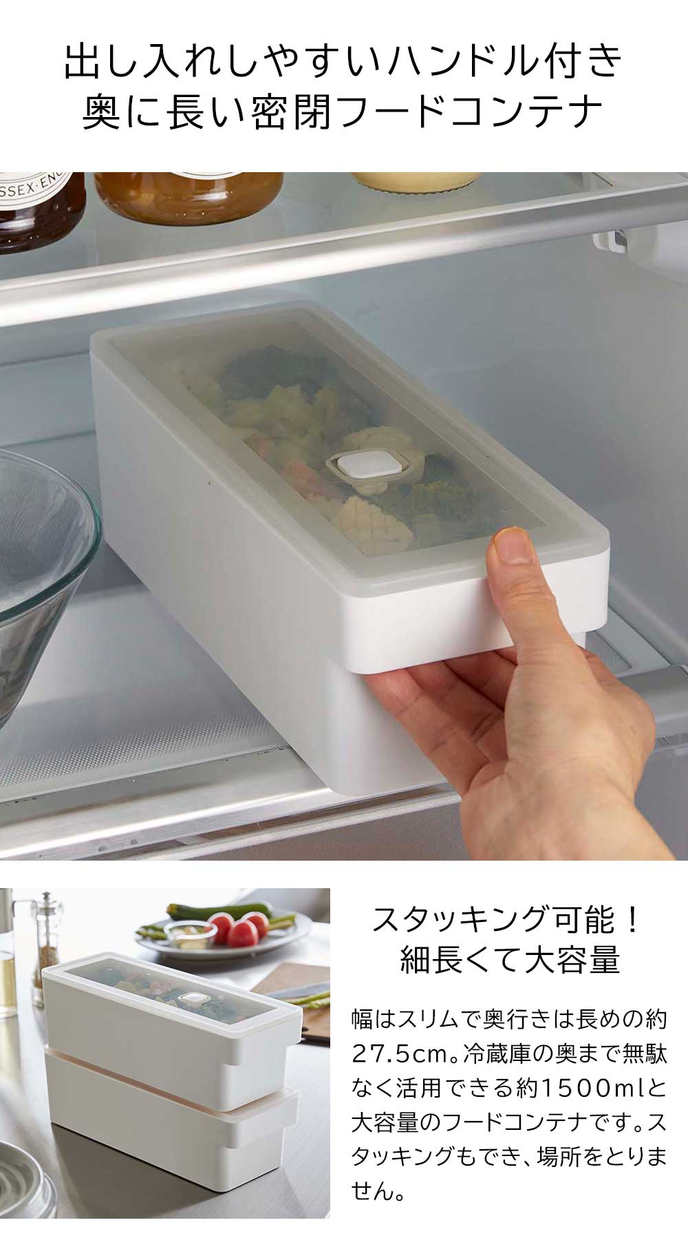 食洗機 電子レンジ 冷凍OK 沢山作った作り置き食材を冷蔵庫内で場所を取らずに保存できる、約1500ml容量の細長形状のフードコンテナです。 幅がスリムで奥行はワイドな形状だから、冷蔵庫内の奥までしっかりと活用でき、なおかつ、幅は取らず整理整頓しやすいのが嬉しいポイント。手前には取っ手がついており、冷蔵庫から出し入れする際に大変便利!半透明の蓋で中が透けて見えるので、食材の把握も簡単です。 シリコーンパッキン付きの蓋の上部にはバルブがあり、それをワンプッシュするだけで簡単に密閉ができます。こちらのフードコンテナは、食洗機・電子レンジ・冷凍OKで、パーツもすべて分解して洗えます。食品保存容器に欲しい機能がギュッと盛り込まれたフードコンテナなので、作り置きの保存に、残り物の保存に、料理の仕込みにと、あれこれと活用したくなります。スタッキングできますので、冷蔵庫内にいくつあっても、整然と重ねてスリムに収納する事ができます。 ![]() ![]() ![]() ![]() ![]() ![]() ![]() ![]() ![]() ![]() ![]() |