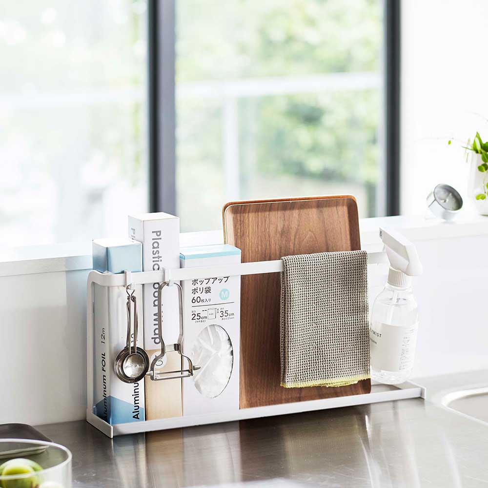 シンク奥の隙間に一括収納 まな板やトレーなどのキッチン小物をまとめて収納できるスタンド。ちょっとしたキッチンの隙間に設置でき、散らかりがちな調理台が一気に片付きます。手狭なキッチンが使い勝手の良い空間に生まれ変わり、調理効率を上げてくれるアイテムです。キッチン小物収納の他にも、手袋・布巾・スプレーボトルを一時置きしたり、付属のフックに計量スプーン等を掛けてご利用いただくことも可能です。 ![]() ![]() ![]() ![]() ![]() ![]() ![]() ![]() ![]() ![]() |