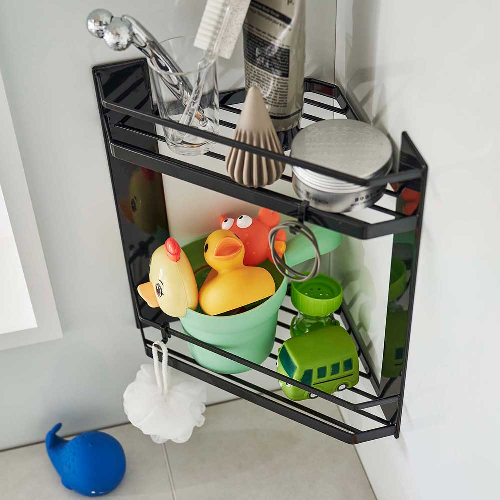 バスルームのコーナーに バスルームのデッドスペースを有効活用できる2段式のラックです。設置は壁面コーナーにマグネットで簡単に取り付けられます。ディスペンサーボトルやバス小物、お子様のおもちゃをまとめて収納できるので、バスルームが広く使え、お掃除もスムーズ。2段の棚は水切れの良いスリット構造だからぬめりにくく清潔に保てるのも嬉しいポイントです。付属のフックを使えばヘアゴムなどを引っかけて収納可能。バスルームの隅に浮かせて設置するので備え付けの棚があっても邪魔にならず収納棚が増やせて便利に使えます。 ![]() ![]() ![]() ![]() ![]() ![]() ![]() ![]() ![]() ![]() |
