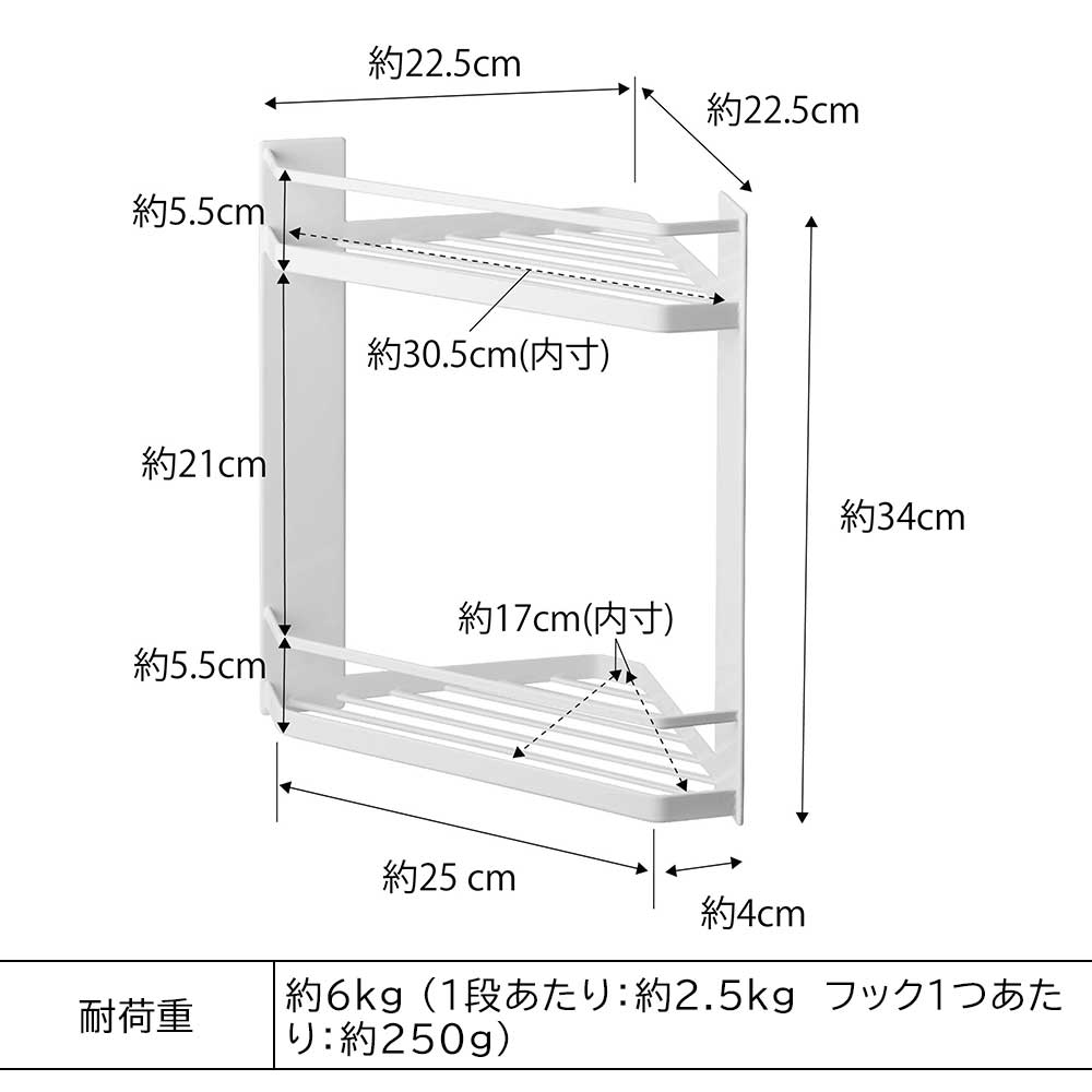約6kg(1段あたり:約2.5kg フック1つあたり:約250g)