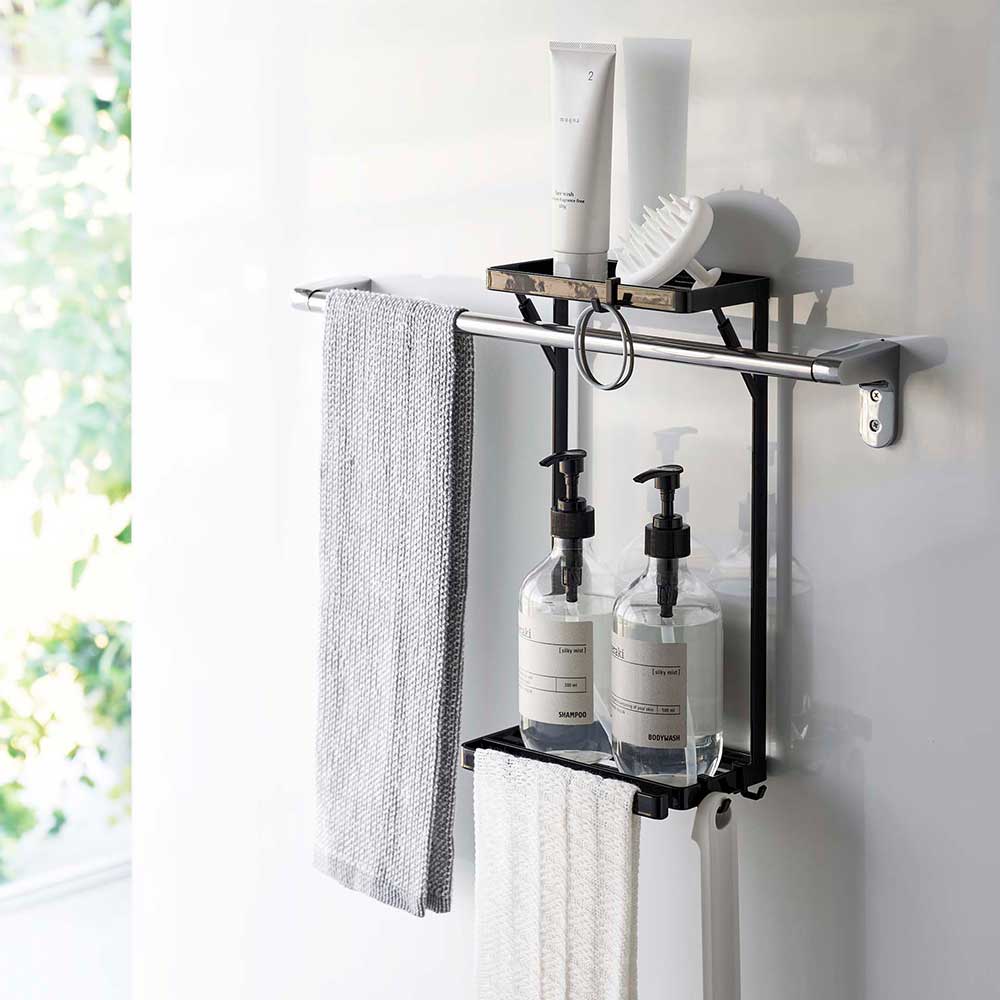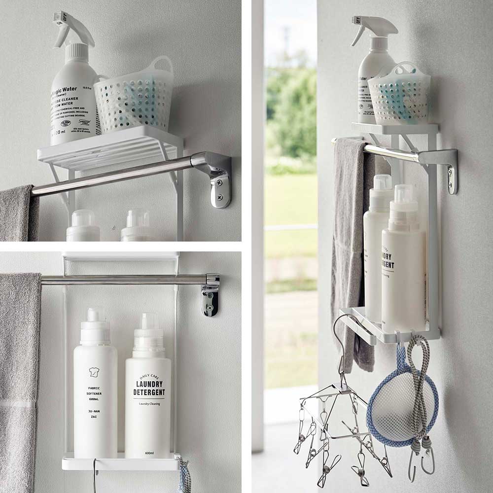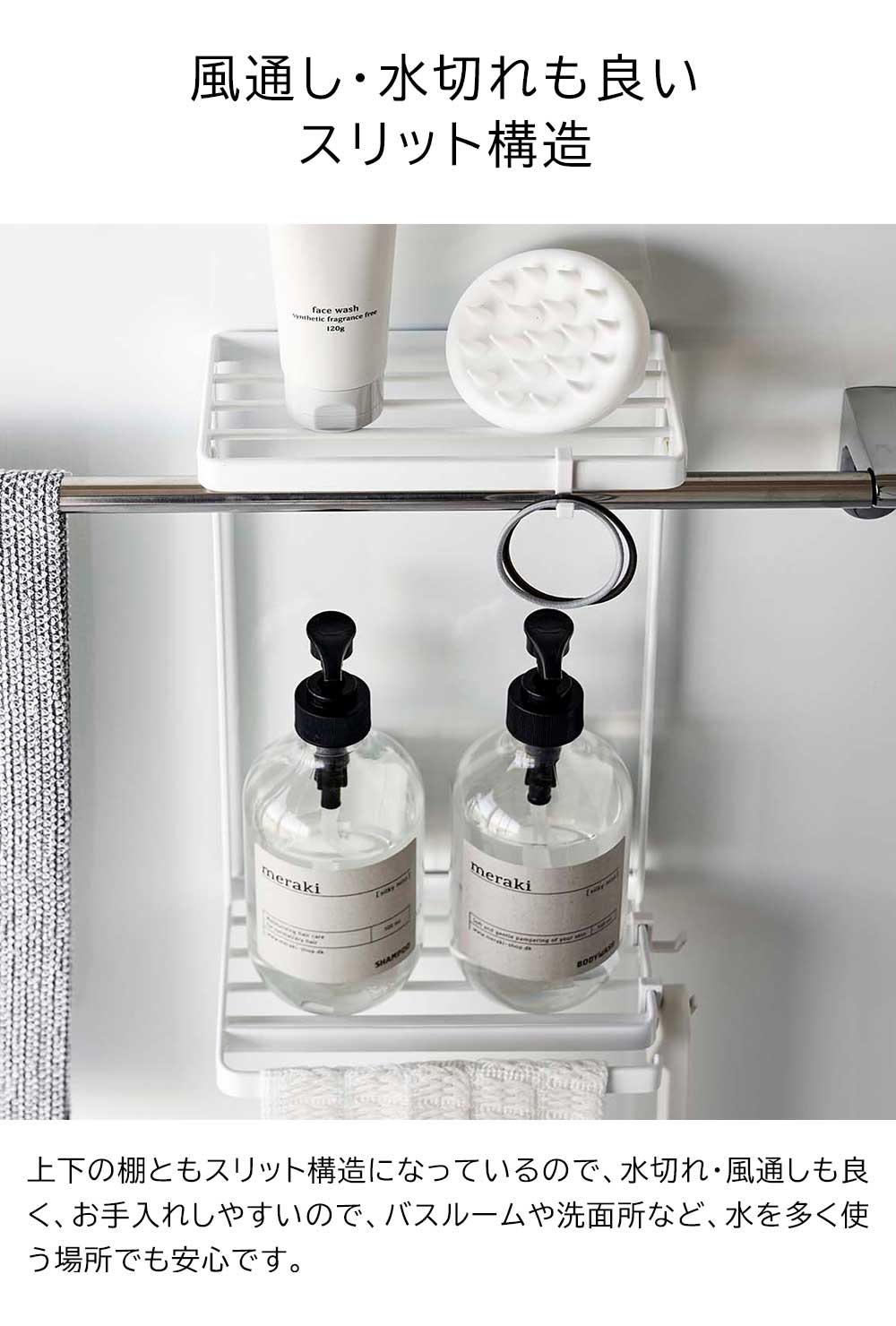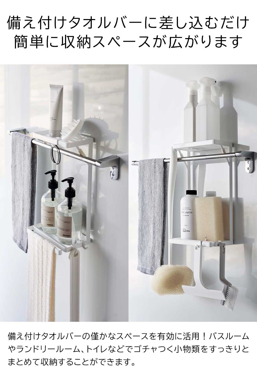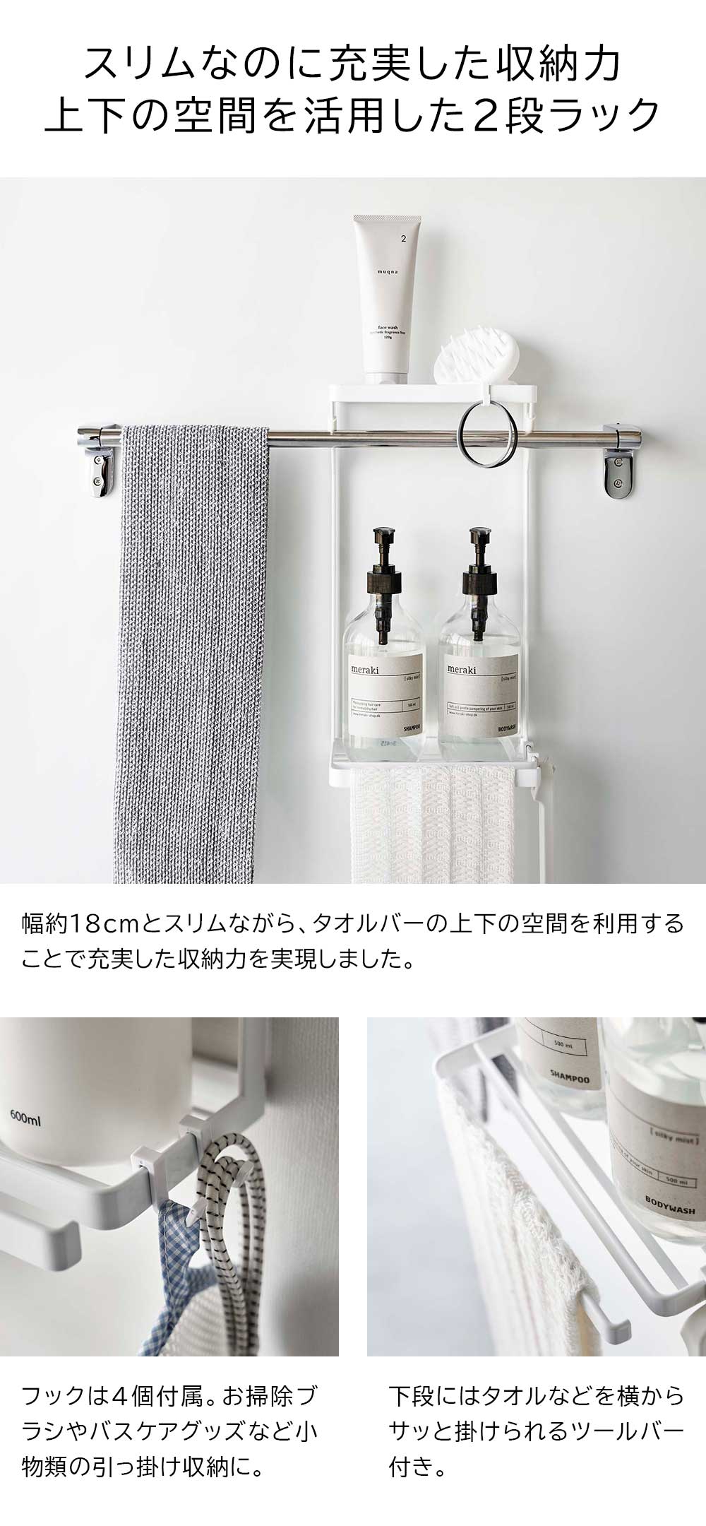 浴室、洗面所、トイレなどスペースが限られている場所の収納にお困りの方も多いはず。そんな時は、備え付けのタオルバーに差し込んで上下の空間を有効に活用できる2段ラックがオススメです。幅約18cmとスリムなのに、充実した収納力。付属のフックを使えば小物類を引っ掛けて吊り下げ収納にも◎ ![]() ![]() ![]() ![]() ![]() ![]() ![]() ![]() ![]() ![]() ![]() |