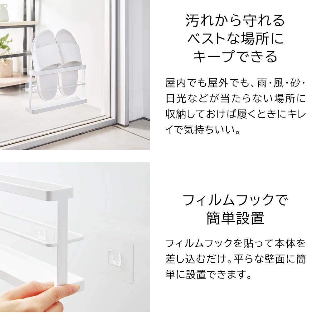 窓ガラスに収納して ベランダスリッパは雨で濡れたり、砂埃で汚れたり、風で飛ばされていたり、日光で劣化したり…。履こうと思ったときに気持ちよく履けないことがよくあります。そんな時はこちらのベランダスリッパホルダーがとっても便利。窓ガラスに収納しておけばきれいな状態のスリッパをキープ、サッと履くことができます。スリッパの裏が窓ガラスに触れない設計がされていて、雨水や汚れをキャッチするトレーもあるので、外履きを室内に持ち込む事が気になる方にもおすすめです。取り付けもフィルムフックで簡単。貼らずに直置きもできる2wayです。ベランダスリッパが履きたいときに気持ち良く履けるスリッパホルダーです。 ![]() ![]() ![]() ![]() ![]() ![]() ![]() ![]() ![]() ![]() ![]() |