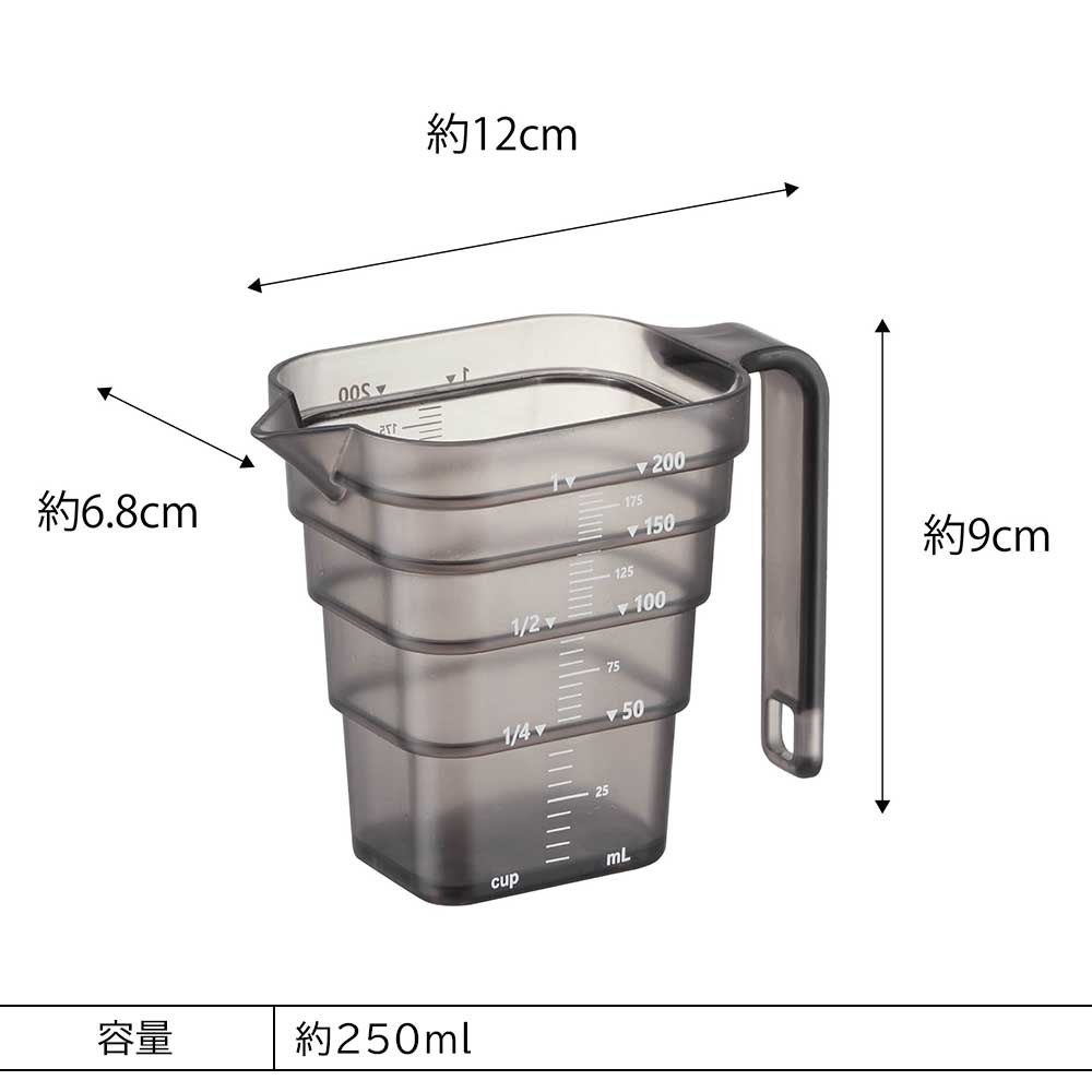 壁に浮かせて簡単に収納マグネット内蔵の段々 計量カップ 200ml
