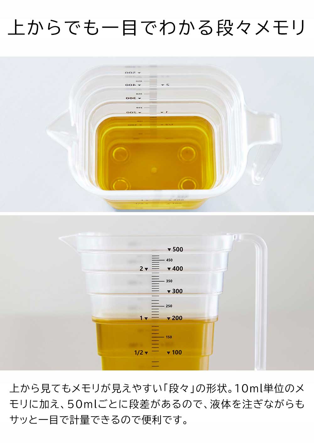 壁に浮かせて簡単に収納マグネット内蔵の段々 計量カップ 500ml