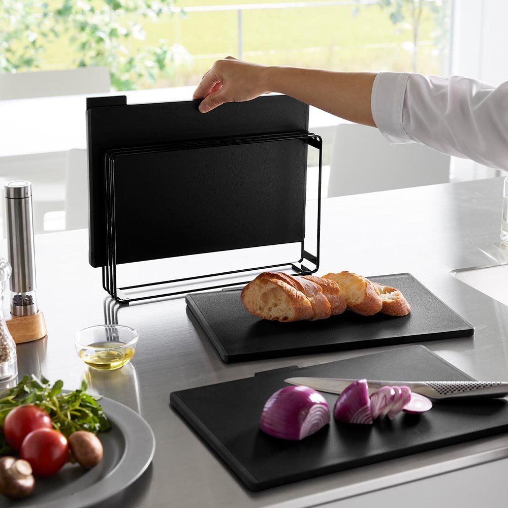 食材に合わせて分けて使える 食材に合わせて使い分けできる、まな板3枚セットです。 1枚ずつにインデックスが付いたデザインで、肉・魚・野菜など使い分けの目印になります。 両面使えるまな板で、フラットな面とフチのある面があり裏表の使い分けも可能。 滑り止めが付いているので、まな板が動かず食材がスムーズにカットできます。 SIAAの基準を満たした抗菌加工済み。更に、食洗機対応だからお手入がラクラク。衛生的にお使いいただけます。 スタンドは、縦横どちらの向きにも置けるから、キッチンのスペースや使いやすさに合わせて設置ができます。 ![]() ![]() ![]() ![]() ![]() ![]() ![]() ![]() ![]() ![]() ![]() ![]() |