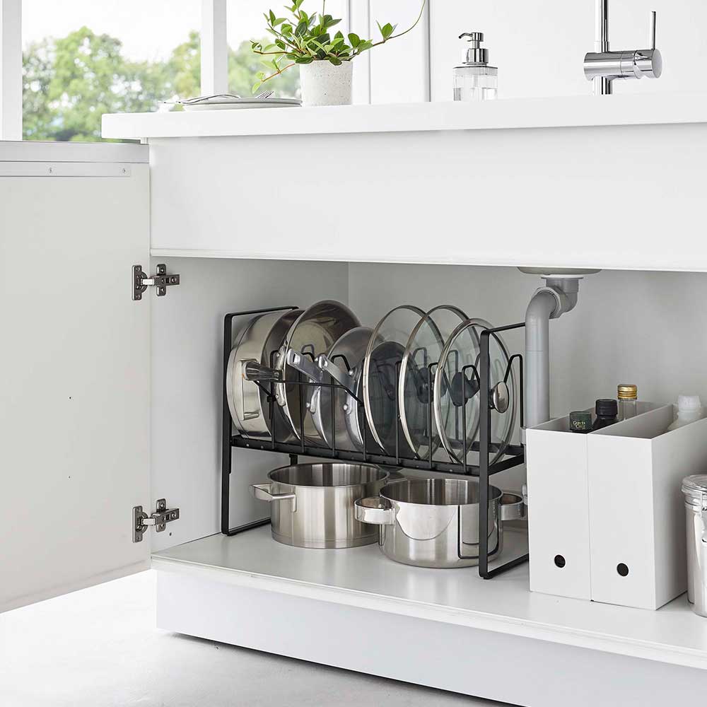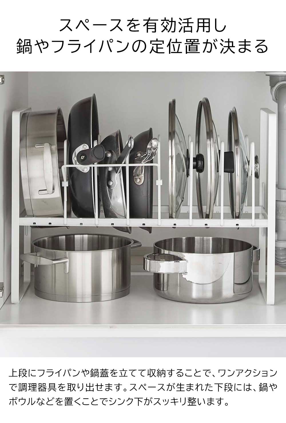 シンク下高さ調整鍋蓋&フライパン収納ラック 2段 タワー ![]()