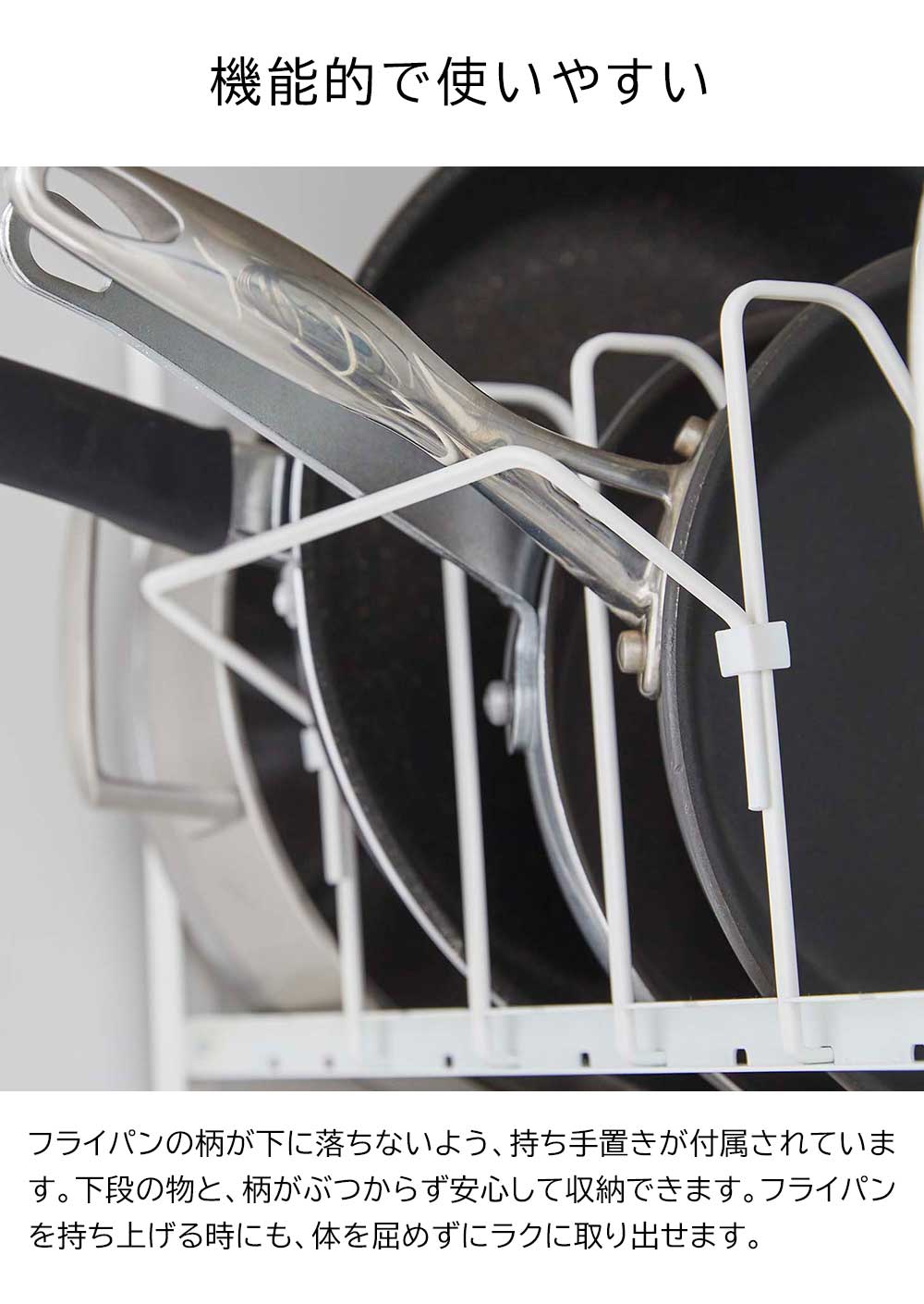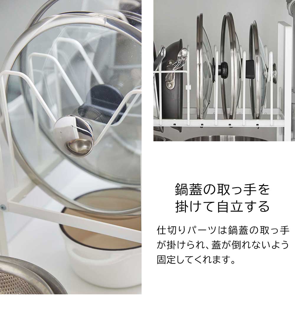 フライパン・蓋・鍋を シンクやビルトインコンロ下のスペースを有効活用できる2段収納ラック。上段にはフライパンや鍋蓋を立てて収納できるので、使わない調理器具を除ける作業がなくなり、ワンアクションでパッと取り出しが可能です。そして、スペースが生まれた下段には、鍋やボウルなどが置けて、シンク下の空間を最大限に活用できます。仕切りの幅、ラックの高さは、フライパンや鍋の大きさに合わせ調節可能で、仕切りパーツは鍋蓋の取っ手が掛けられ、蓋が倒れないよう固定してくれます。さらに、フライパンの柄が下に落ちないよう、持ち手置きが付属されており、下段の物と柄がぶつからず安心して収納できるだけでなく、フライパンを持ち上げる時にも、体を屈めずにラクに取り出せます。 ![]() ![]() ![]() ![]() ![]() ![]() ![]() ![]() ![]() ![]() ![]() |