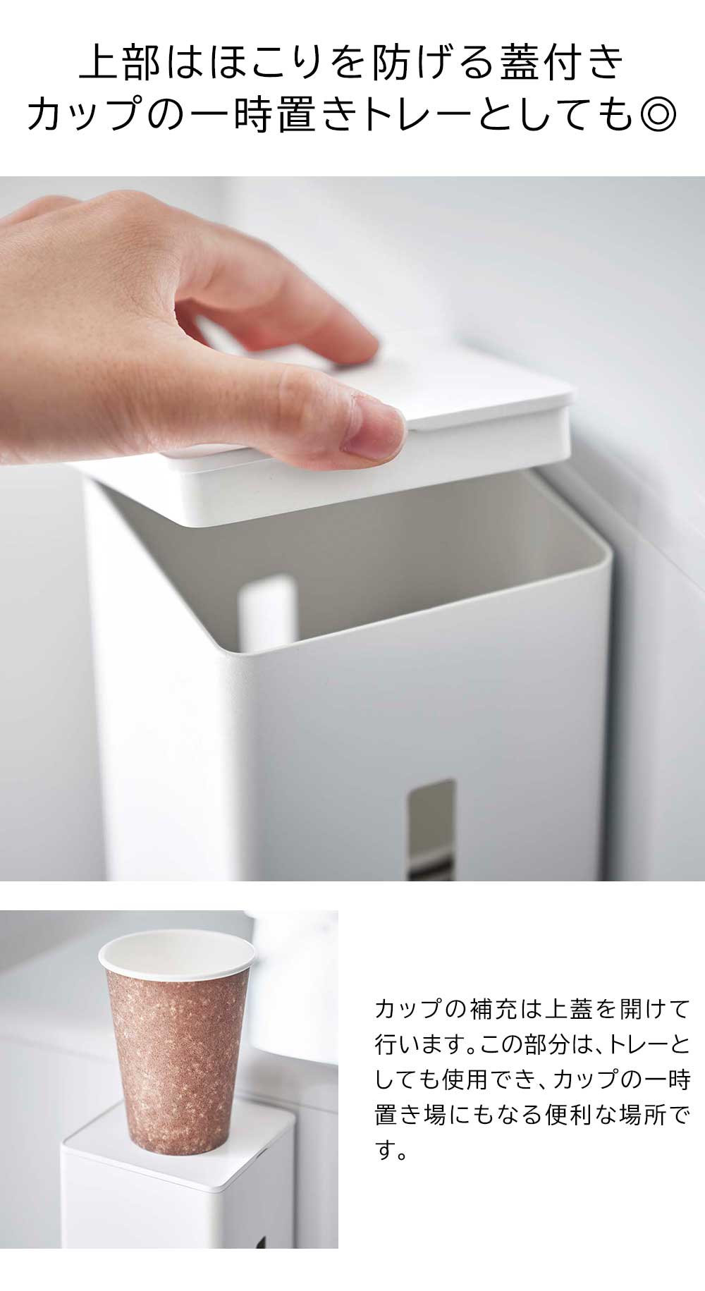 ウォーターサーバーの側面に ウォーターサーバーの側面にマグネットで簡単に取り付けができるカップディスペンサーです。 直径約5.2~8cmの紙コップを60~85個程収納できます。 紙コップの残量がひと目で分かるスリットはディスペンサーの両側面に入っていますので、ウォーターサーバーの左右どちらに設置しても簡単に補充チェックができます。 上蓋はほこり避けとミニトレーの役割を兼ね備えています。ウォーターサーバー使用中のコップやスティック飲料などの一時置き場にもなり大変便利です。 石こうボード用アンカーボルトと木ネジも付属しておりますので、壁面設置も可能です。 ![]() ![]() ![]() ![]() ![]() ![]() ![]() ![]() ![]() ![]() ![]() ![]() |