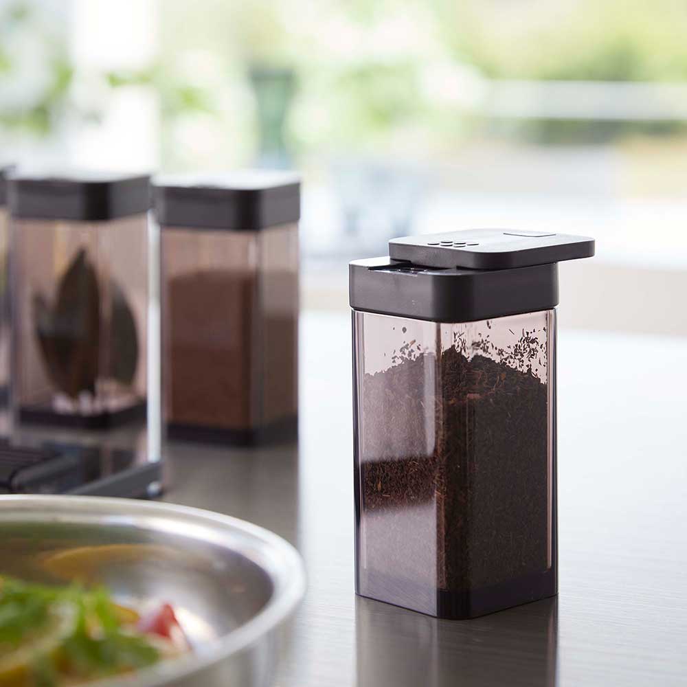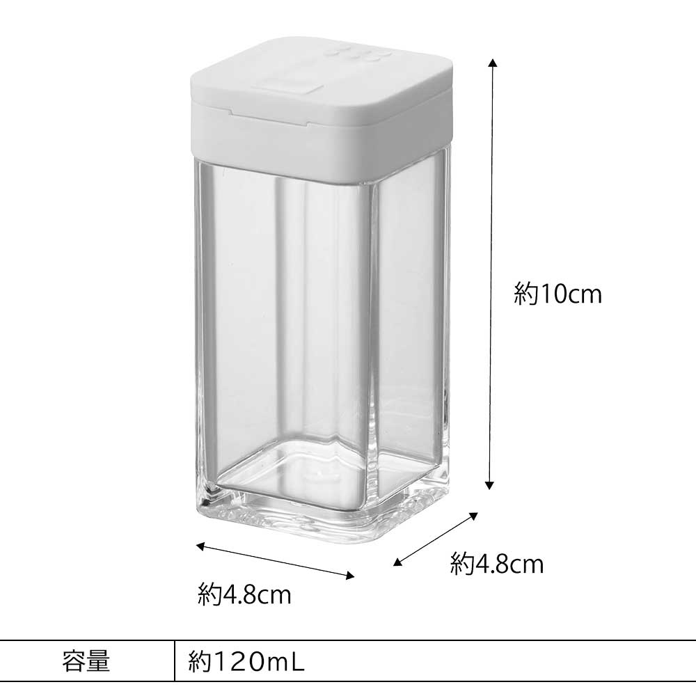片手でスライド開閉! 蓋を前後にスライドさせ、お好みの量を出すことができる、やや大きめ、約120mL容量のスパイスボトルです。 片手で使う事ができるので、焼く・炒めるなどの短時間で済ませたい調理時にも手間取らずにテンポ良く使えます。 スクエア型のボトルは収まりが良く、引き出し内などの限られたスペースでも綺麗に片付きます。また、透明のボトルだから、中に何が入っているか、残量はどのくらいかなどがひと目で分かり、見える場所に並べて置いてもおしゃれに見えるインテリア性も兼ね備えています。 ![]() ![]() ![]() ![]() ![]() ![]() ![]() ![]() ![]() ![]() |