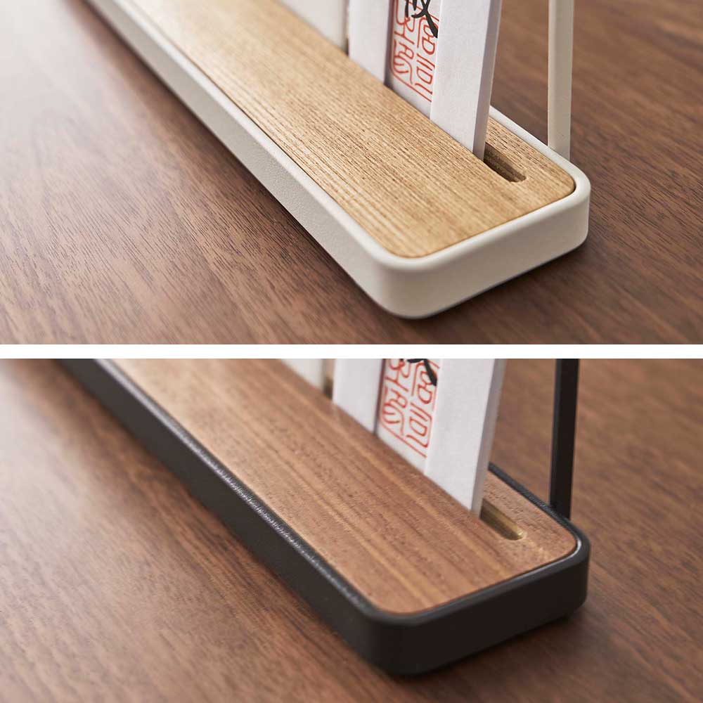 天然木とモノトーンのスチールの組み合わせで、落ち着きのあるシンプルな佇まい。空間に自然に馴染みます。