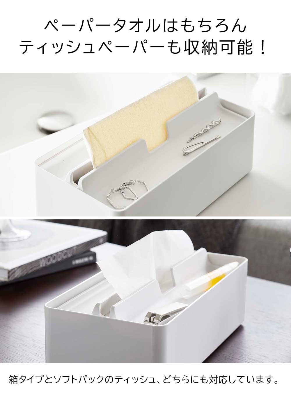 蓋が便利なトレーになる ペーパータオルやティッシュペーパーをセットできるシンプルでスタイリッシュなケースです。 蓋の部分は、小物を置けるトレーになっており、ケース周辺にあるアイテムの収納場所になります。 例えば、洗面ルームではアクセサリーの一時置きに、リビングやダイニングでは、すぐ手に取れる場所にあると嬉しい小物類を置く場所にと、シーンに応じて便利に活用できます。 ![]() ![]() ![]() ![]() ![]() ![]() ![]() ![]() ![]() ![]() ![]() |
