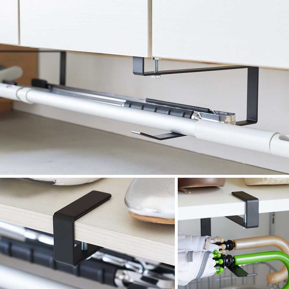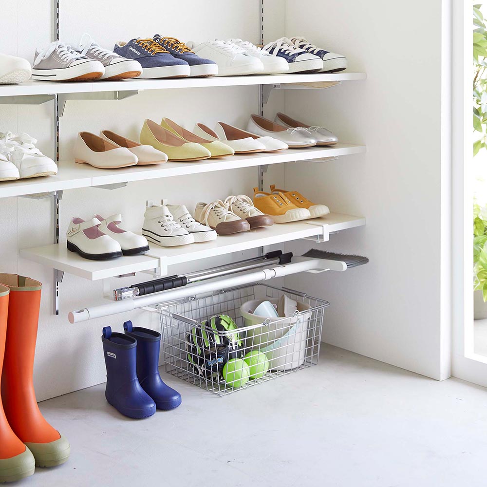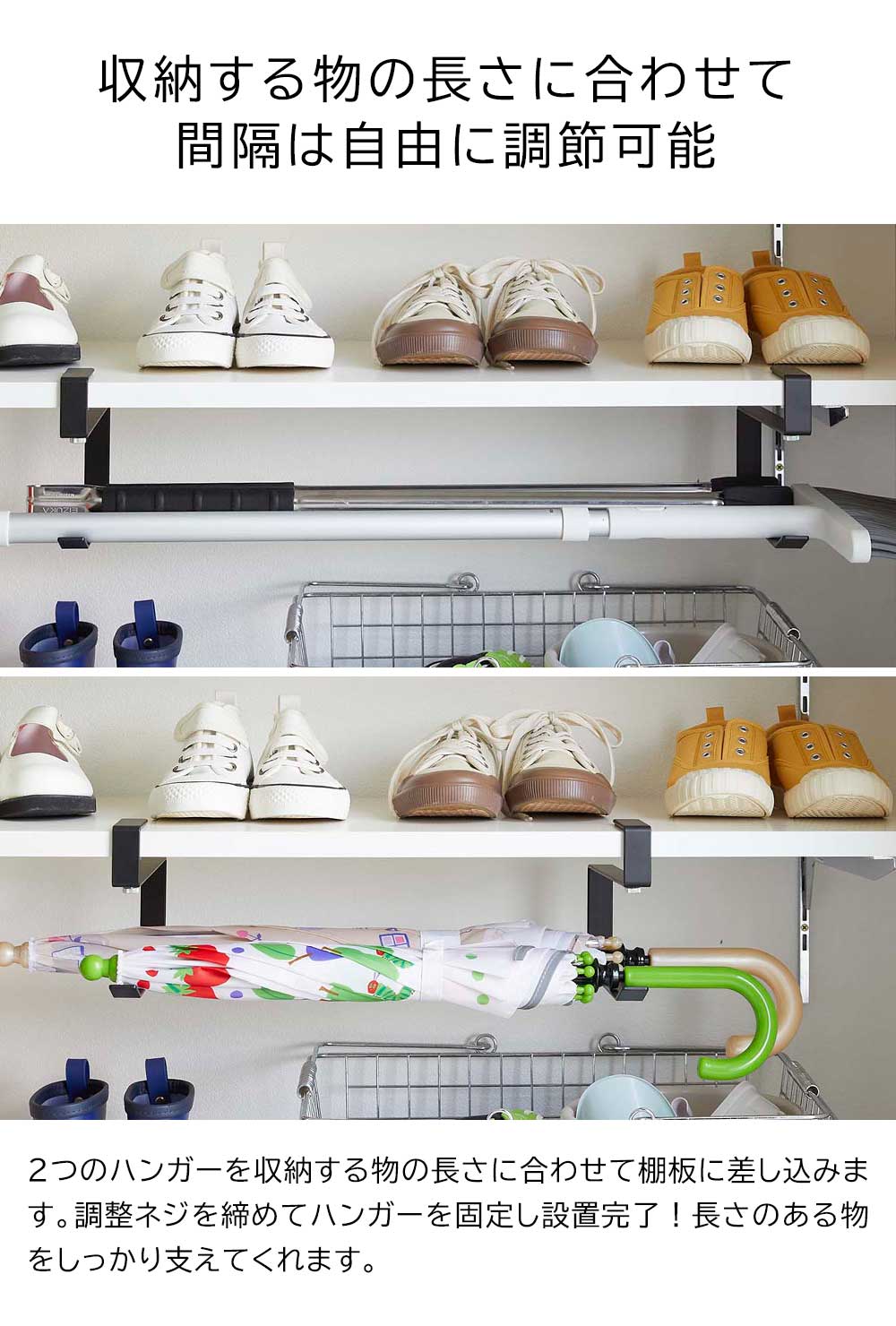 置き場所に困る 玄関やシューズクロークに立てかけられている、ほうきや野球バッドなど置き場所に困る物を浮かせて収納できるハンガー。下駄箱の棚下や、シューズクロークの棚のちょっとした隙間を収納スペースとして活用できます。取り付けはとても簡単で、2つのハンガーをお好みの間隔に調整し、ハンガーを棚板に差し込むだけ。調整ネジを締めてハンガーを固定するので、長さのある物をしっかり支えてくれます。今まで床置きしていた自転車の空気入れなども浮かせて収納できるので、お掃除しやすい玄関になります。 ![]() ![]() ![]() ![]() ![]() ![]() ![]() ![]() ![]() ![]() ![]() |