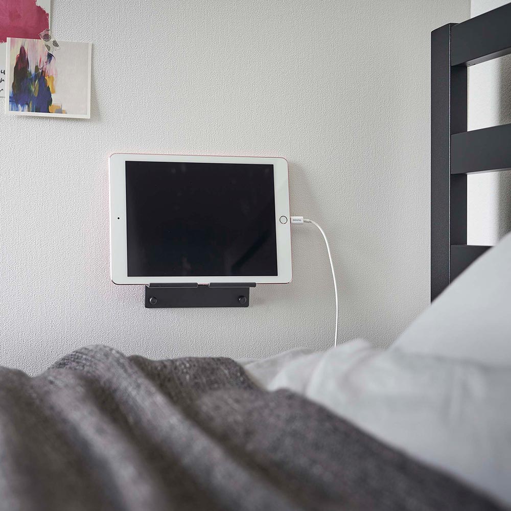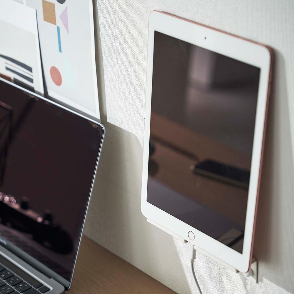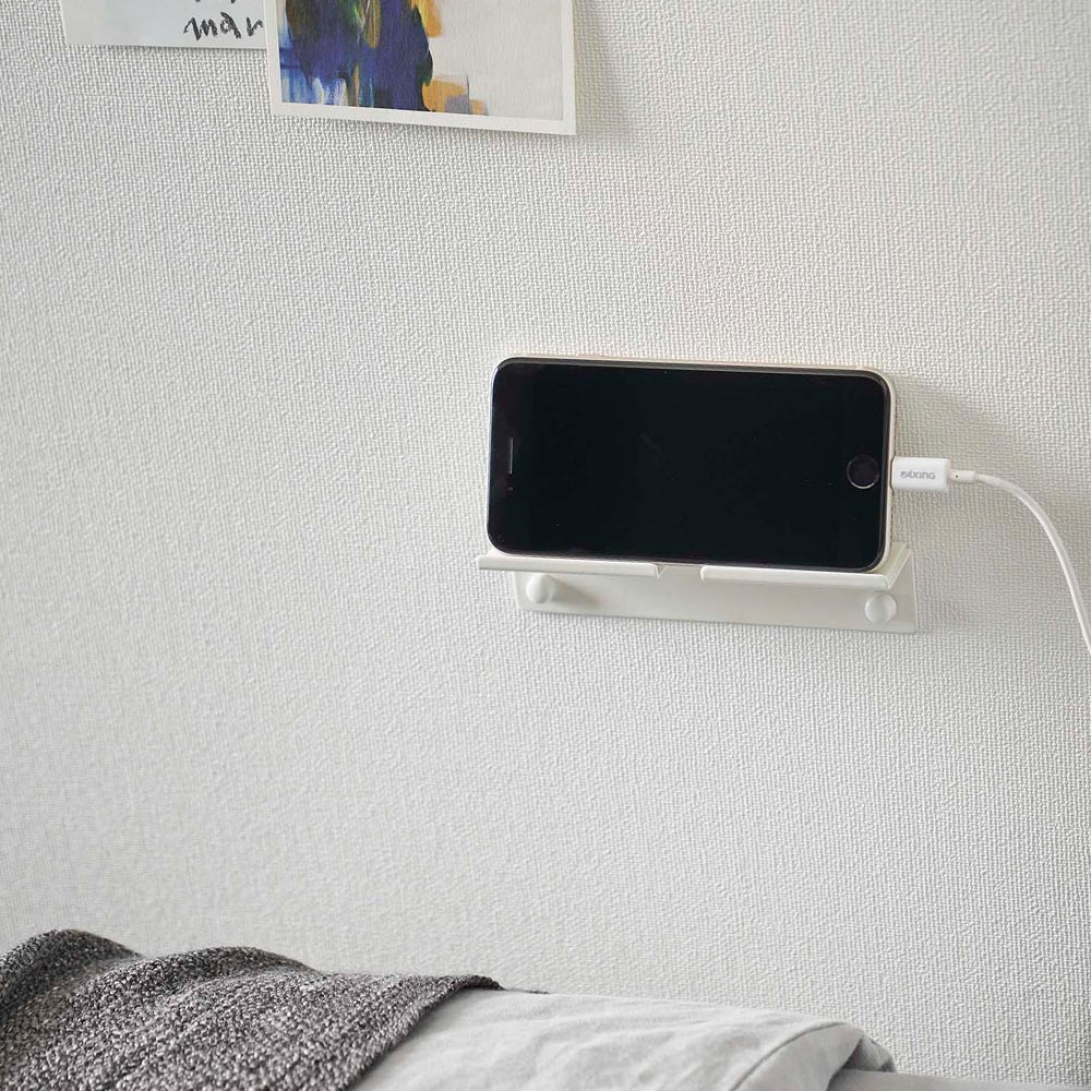 スマホやタブレットPCを リモートワークやオンライン授業、就寝時などに大活躍! スマートフォンやタブレットPCを、デスク前やベッド横の壁面に自由に設置できる便利なホルダーです。ホルダー中央には充電コードが入るスリットがあり、充電しながらスマホやタブレットを立てて収納することができます。 見やすい位置に取り付ければ、リモートワークやオンライン授業の為のセッティングも簡単!デスクの場所を占有することなく、快適な視聴環境を作ることができます。 付属の石こうボードピンで取り付けるので、壁の穴が目立ちにくく、賃貸住宅にお住まいの場合など、壁に大きな穴をあけたくない方も気軽にご使用いただけます。また、付属の木ネジでの取り付けも可能です。 ![]() ![]() ![]() ![]() ![]() ![]() ![]() ![]() ![]() |