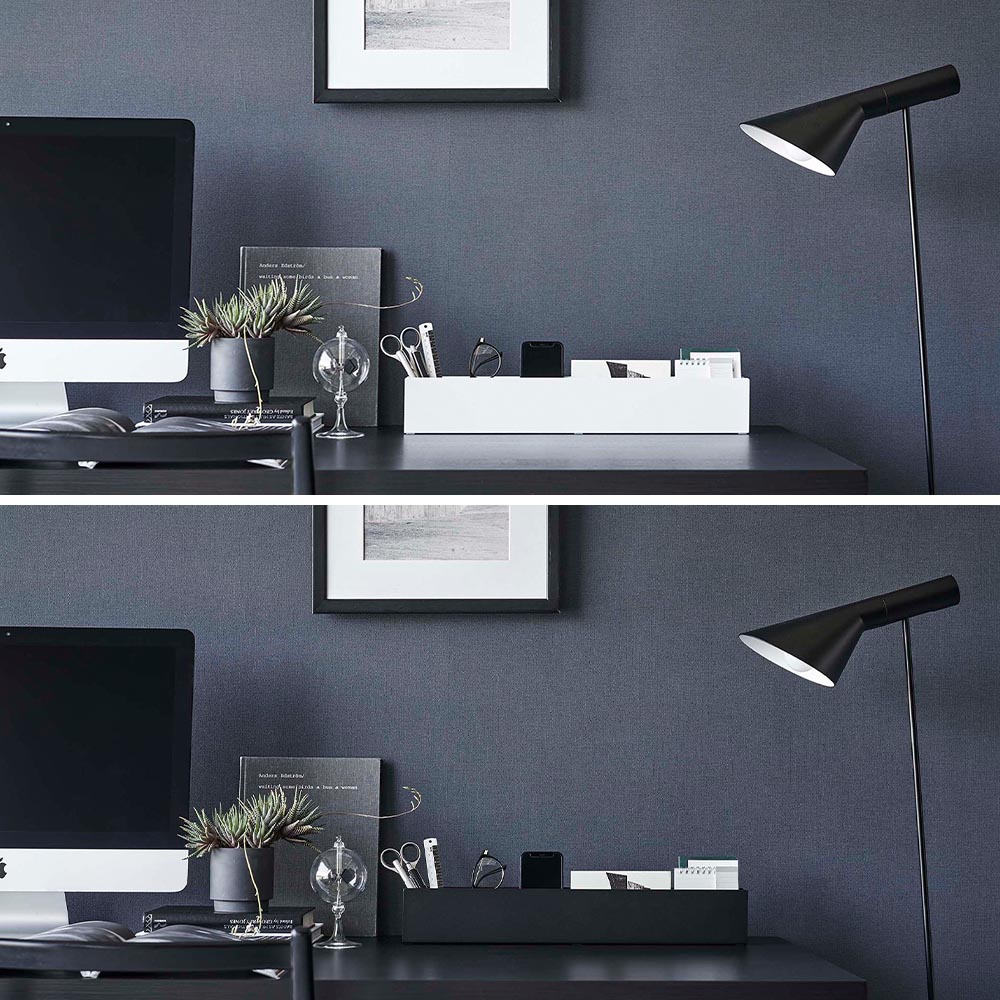 デスクのすみに 奥行わずか5cmに文房具をスマートに整理できる、場所をとらないスリムなデスクオーガナイザー。ペン、はさみ、メモ帳などの物の住所を決めて、いつでもすぐに仕事や勉強ができる環境が整います。収納した物が滑りにくいように、底面にはシリコーン製のマットが敷いてあります。クリップなど細々した物を置くのに便利な小物トレーやコの字型の仕切りは、収納物に合わせて調節可能です。小物トレーの奥には隙間があり、DMなどを挟んで収納できます。また、本体は、高級感のあるマット仕上がりのスチール製で、シンプルなデザインは、どのようなお部屋のインテリアにも馴染みます。 ![]() ![]() ![]() ![]() ![]() ![]() ![]() ![]() ![]() ![]() |