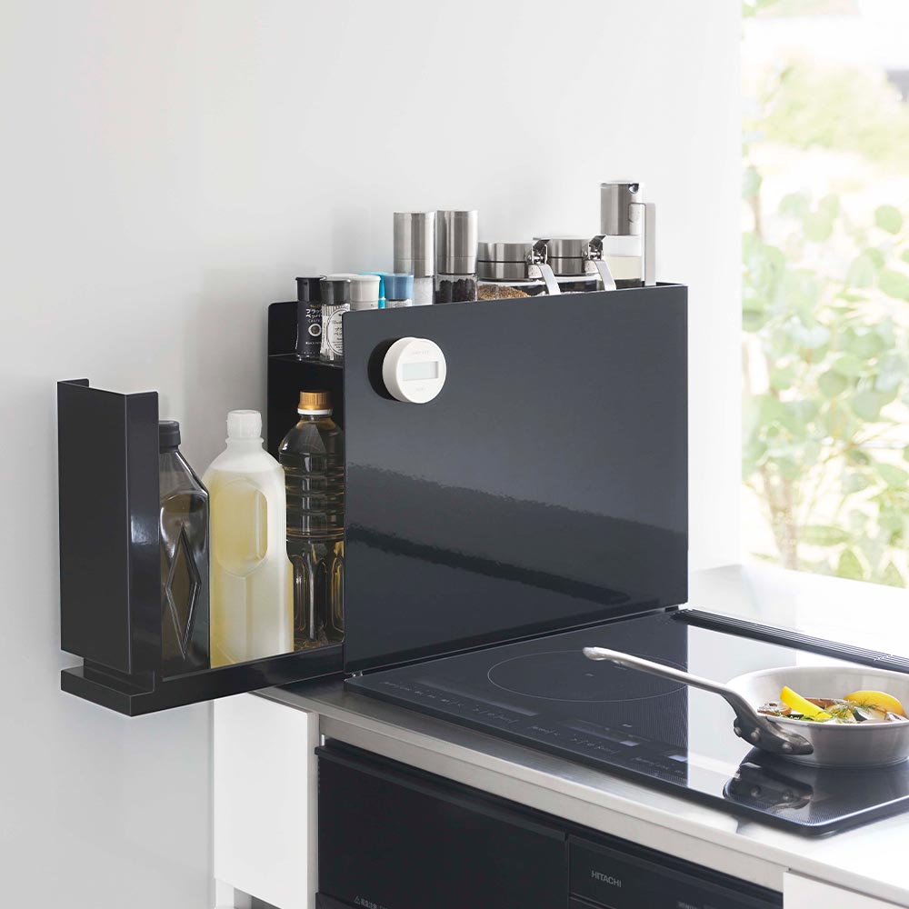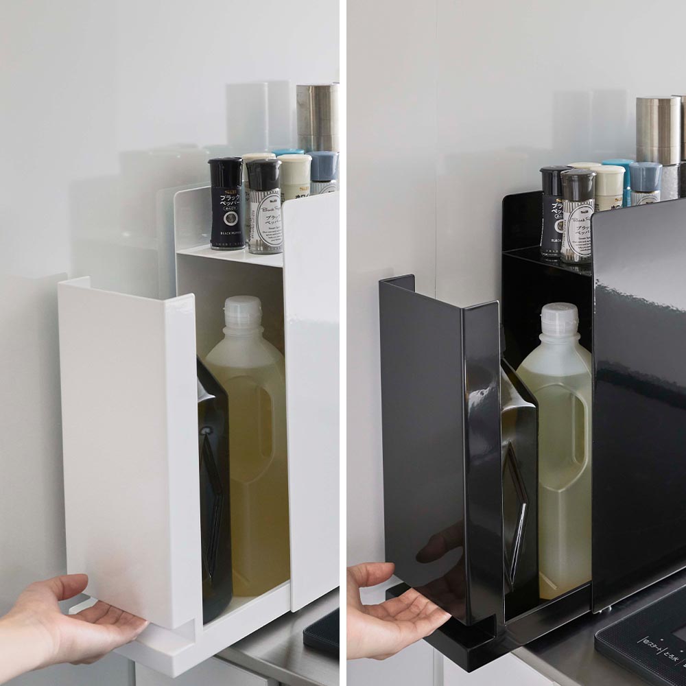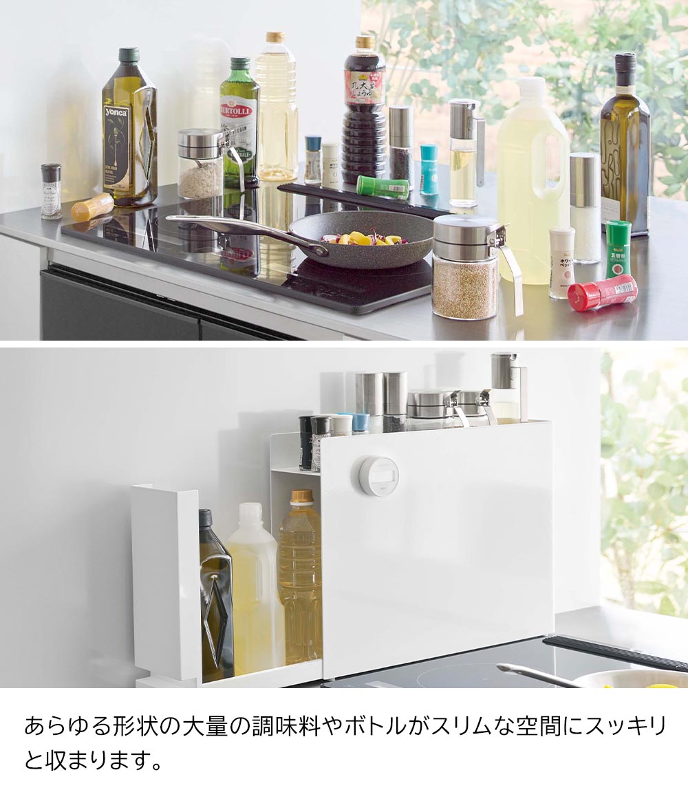 調味料をまとめて収納! お料理に欠かせない大量の調味料をまとめて収納できるスパイスラック。使わない時は、隠せるので、生活感がなくなりキッチンがスッキリします。コンロ横に収まるスリムな引き出し式のラックは、下段の引き出しはボトル類、上段のオープン棚には、使用頻度の高い調味料を置き、すぐ取り出せて便利です。光沢があり高級感のある本体は、汚れを簡単に拭き取れてお手入れがラクです。側面にはマグネットがつき、キッチンタイマーやフックを貼り付けられます。フックにはお玉やフライ返しなどのキッチンツール類を掛けて、さらに使い勝手の良いキッチンへとカスタマイズできるラックです。 ![]() ![]() ![]() ![]() ![]() ![]() ![]() ![]() ![]() ![]() ![]() ![]() |