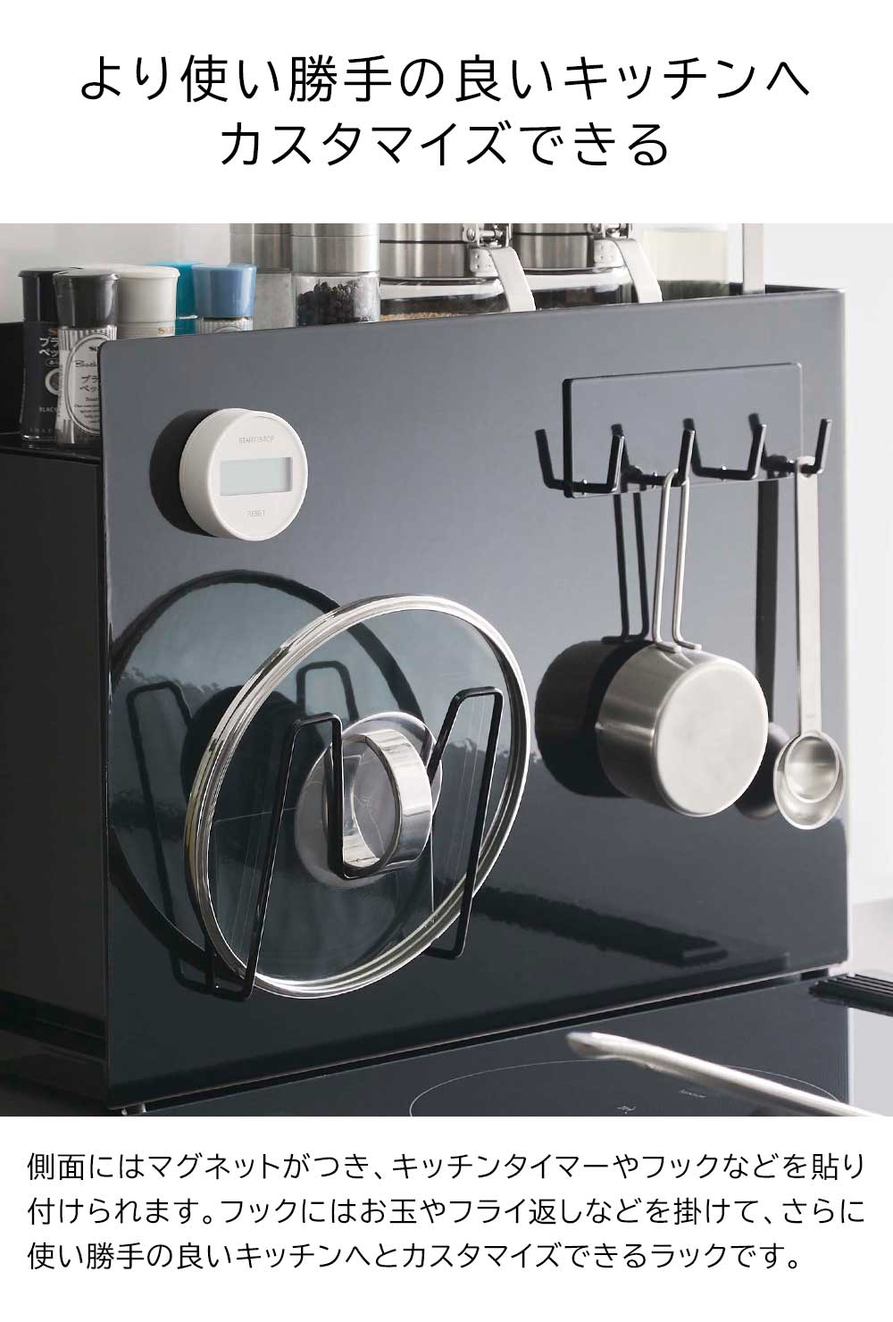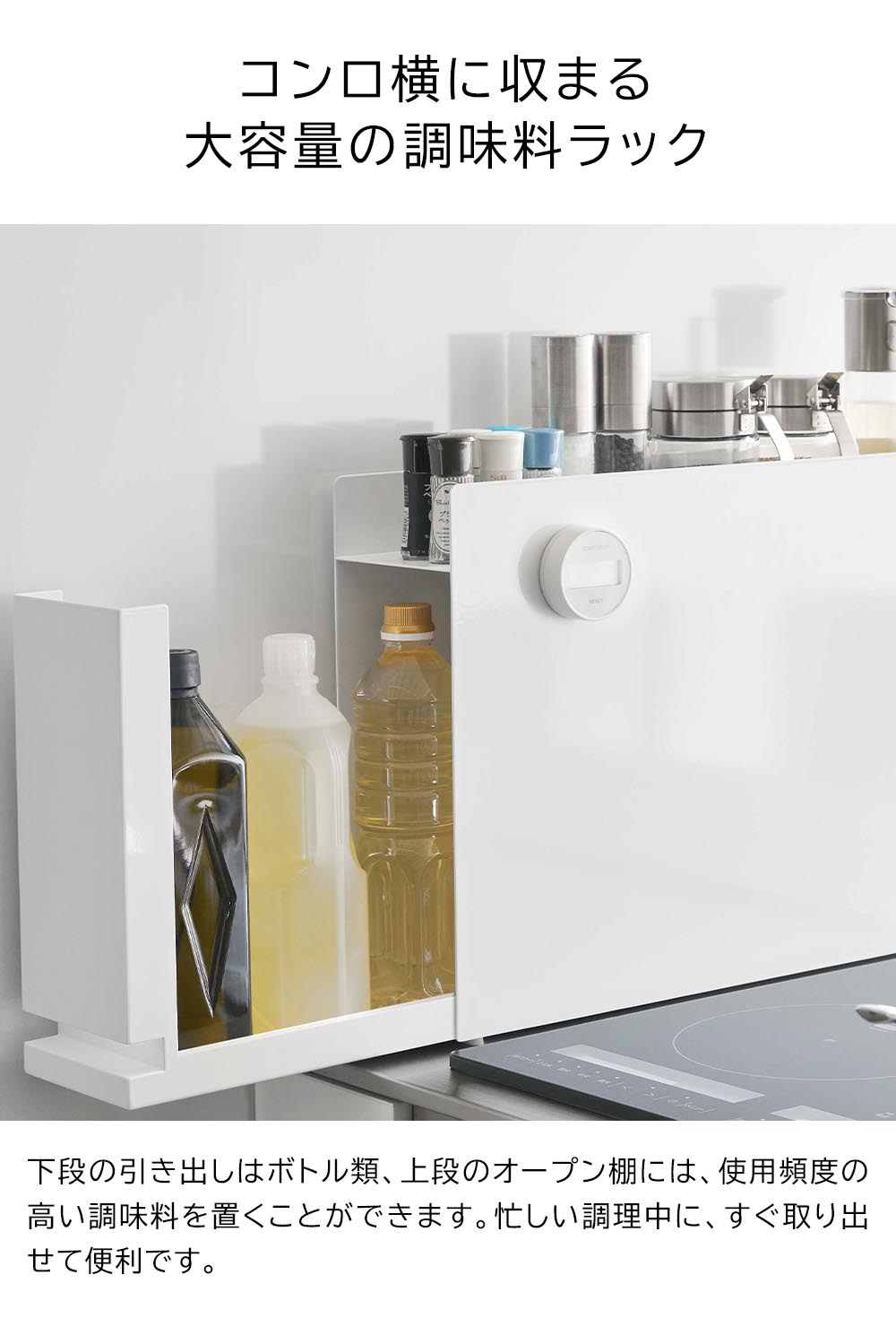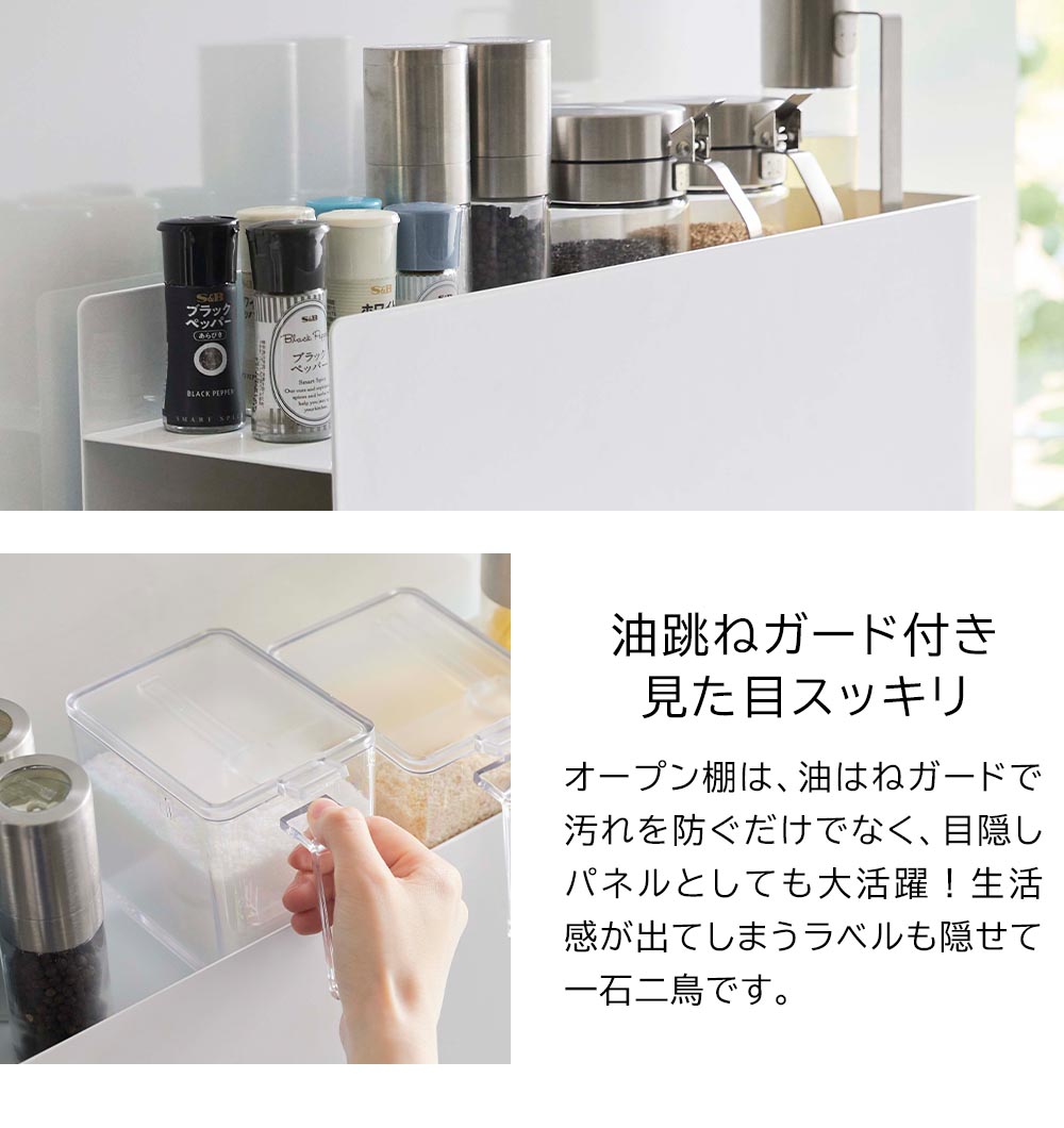 調味料をまとめて収納! お料理に欠かせない大量の調味料をまとめて収納できるスパイスラック。使わない時は、隠せるので、生活感がなくなりキッチンがスッキリします。コンロ横に収まるスリムな引き出し式のラックは、下段の引き出しはボトル類、上段のオープン棚には、使用頻度の高い調味料を置き、すぐ取り出せて便利です。光沢があり高級感のある本体は、汚れを簡単に拭き取れてお手入れがラクです。側面にはマグネットがつき、キッチンタイマーやフックを貼り付けられます。フックにはお玉やフライ返しなどのキッチンツール類を掛けて、さらに使い勝手の良いキッチンへとカスタマイズできるラックです。 ![]() ![]() ![]() ![]() ![]() ![]() ![]() ![]() ![]() ![]() ![]() ![]() |