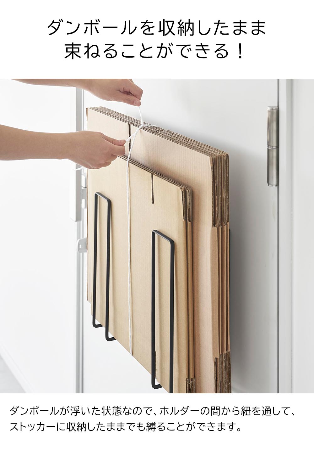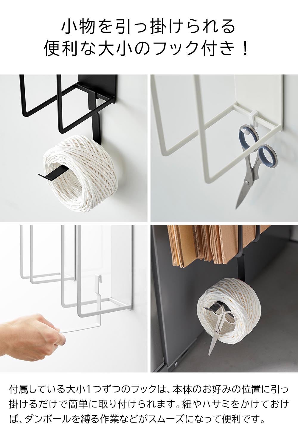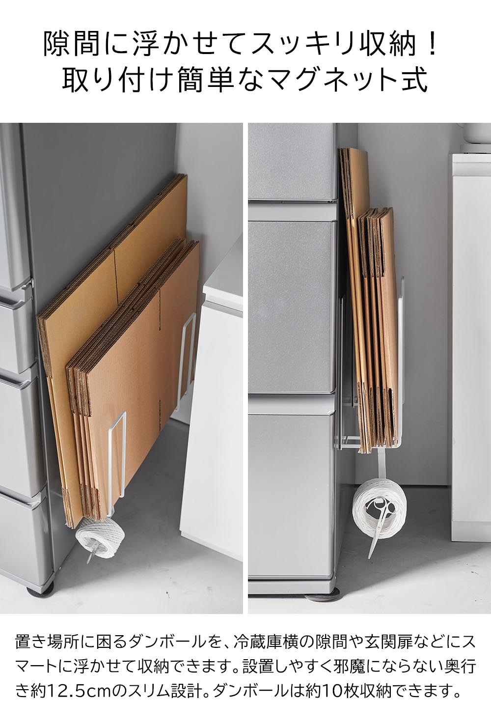 ダンボールを浮かせて収納! 置き場所に困るダンボールをすっきり収納できる、ダンボールストッカー。 マグネット式なので簡単に取り付けることができ、 ダンボールのサイズや設置する場所に合わせて、幅や高さなどの調整が気軽におこなえます。 冷蔵庫横の隙間や玄関扉などに、設置しやすく邪魔にならないスリム設計なのもうれしいポイント。 荷物を受けとる場所の近くに、ダンボール置き場をつくることで、 開梱してすぐに収納でき、散らかり防止になります。 ストッカーに収納したまま束ねられるので、サイズや形状がバラバラでもスムーズにまとめられます。 付属の大小のフックには、紐やハサミを引っ掛けて収納しておくことができるので便利です。 ![]() ![]() ![]() ![]() ![]() ![]() ![]() ![]() ![]() ![]() |