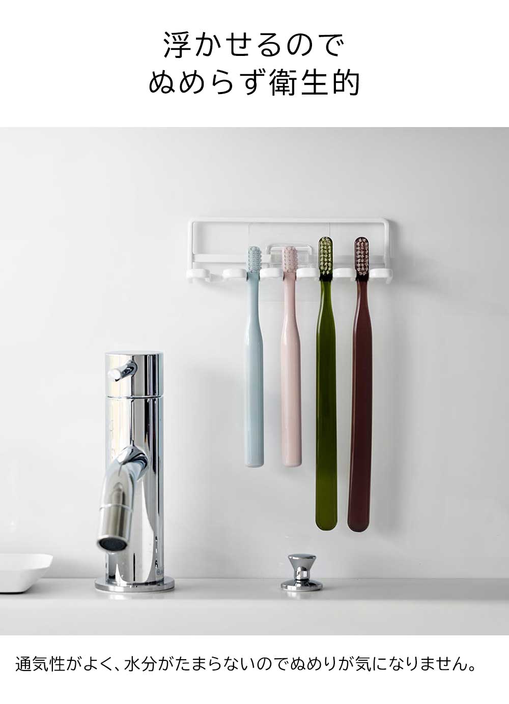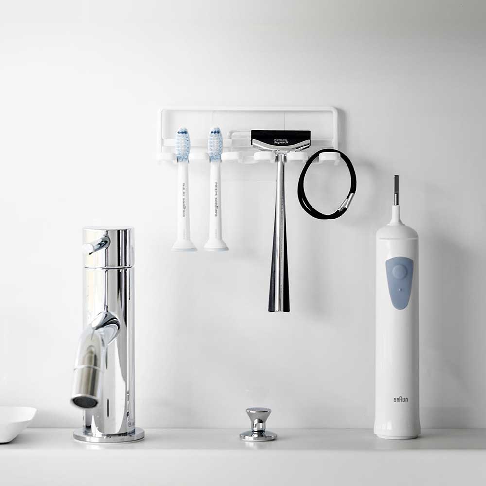 お好きな場所に簡単設置! 洗面所やお風呂場など、お好きな場所に設置できる歯ブラシホルダーです。フィルムフックなので取り付けも簡単。浮かせていて通気性がよく水分がたまらないので、ぬめりが出にくくきれいにお使いいただけます。歯ブラシ同士が触れ合わず、1本ずつを独立して仕舞っておけます。シェーバーや電動歯ブラシの替えなどの収納も可能です。 ![]() ![]() ![]() ![]() ![]() ![]() ![]() ![]() ![]() ![]() ![]() |