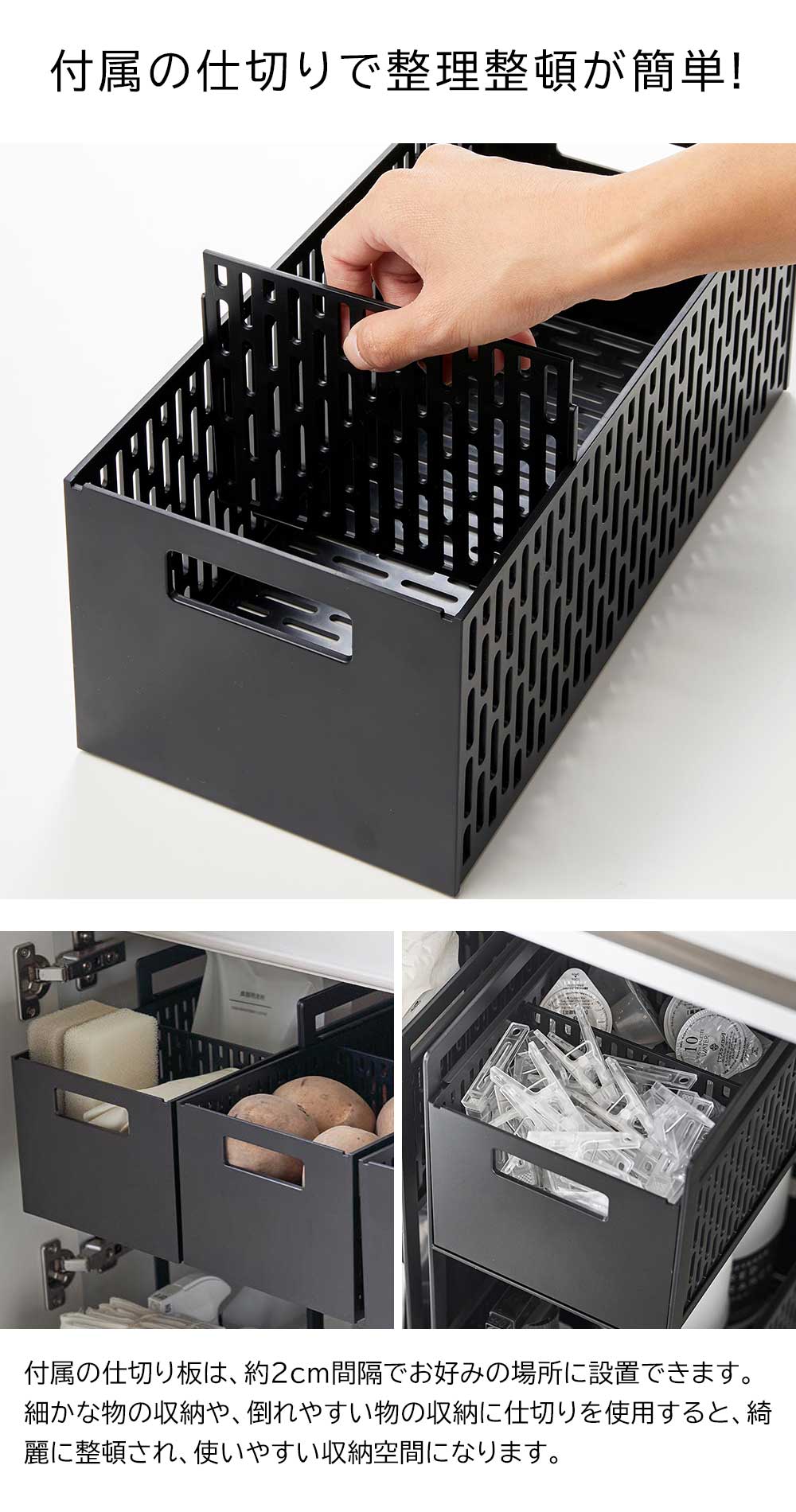 また、付属の仕切り板を利用すれば、収納物が倒れるのを防いだり、アイテムごとの収納エリア分けなどもでき、さらに機能的にご使用いただけます。