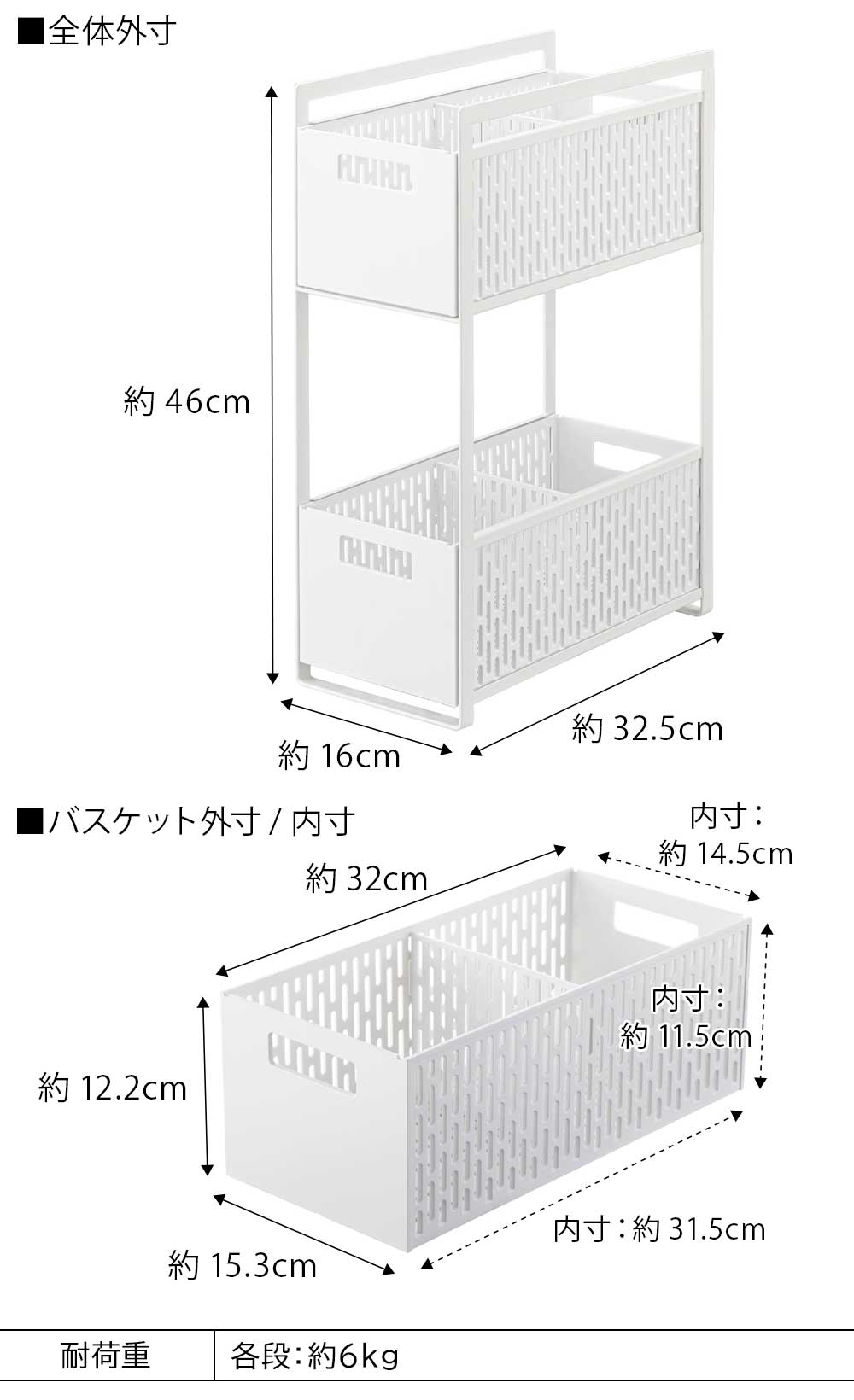 バスケット:約W14.5×D31.5×H11.5cm(下段:約H28cm)