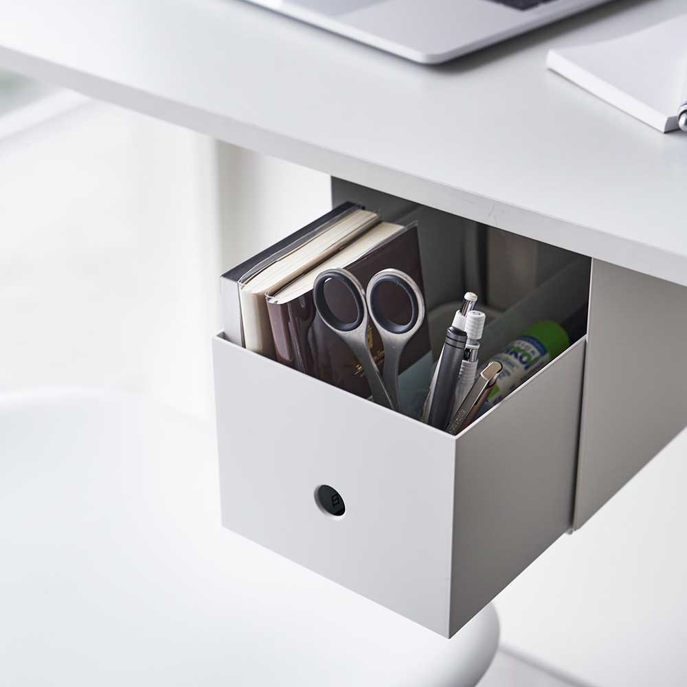 ついつい物を置いて散らかってしまうテーブル上。そんなテーブル上の様々な小物類を一括に収納できる便利な収納ラックをご紹介します。デスク下にラックを付属の木ネジで取り付け。市販の収納ボックスを利用して引き出しを作り、そこへ小物類をひとまとめに収納すれば出し入れもしやすく簡単に整理整頓ができます。ダイニングテーブルやデスク下にもなじむシンプルなデザイン。文具類や手帳、文庫などから、カトラリーやよく使う調味料、リモコンやリーディンググラスなど、様々な小物の収納にピッタリ。なにかと便利な収納ラックです。
