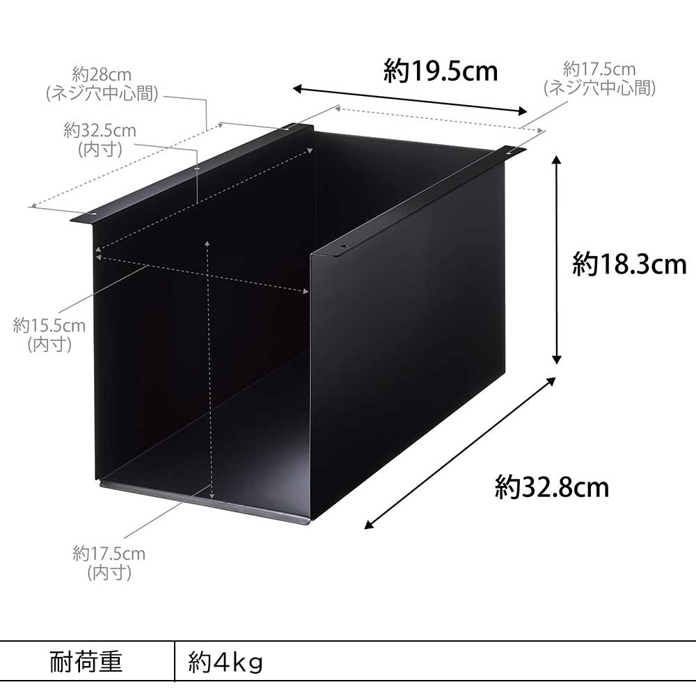 約W15.5×D32.5×H17.5cm(幕板があるテーブルの場合、H17.5cmからテーブルの幕板を引いた高さ)以内の収納ボックス。
