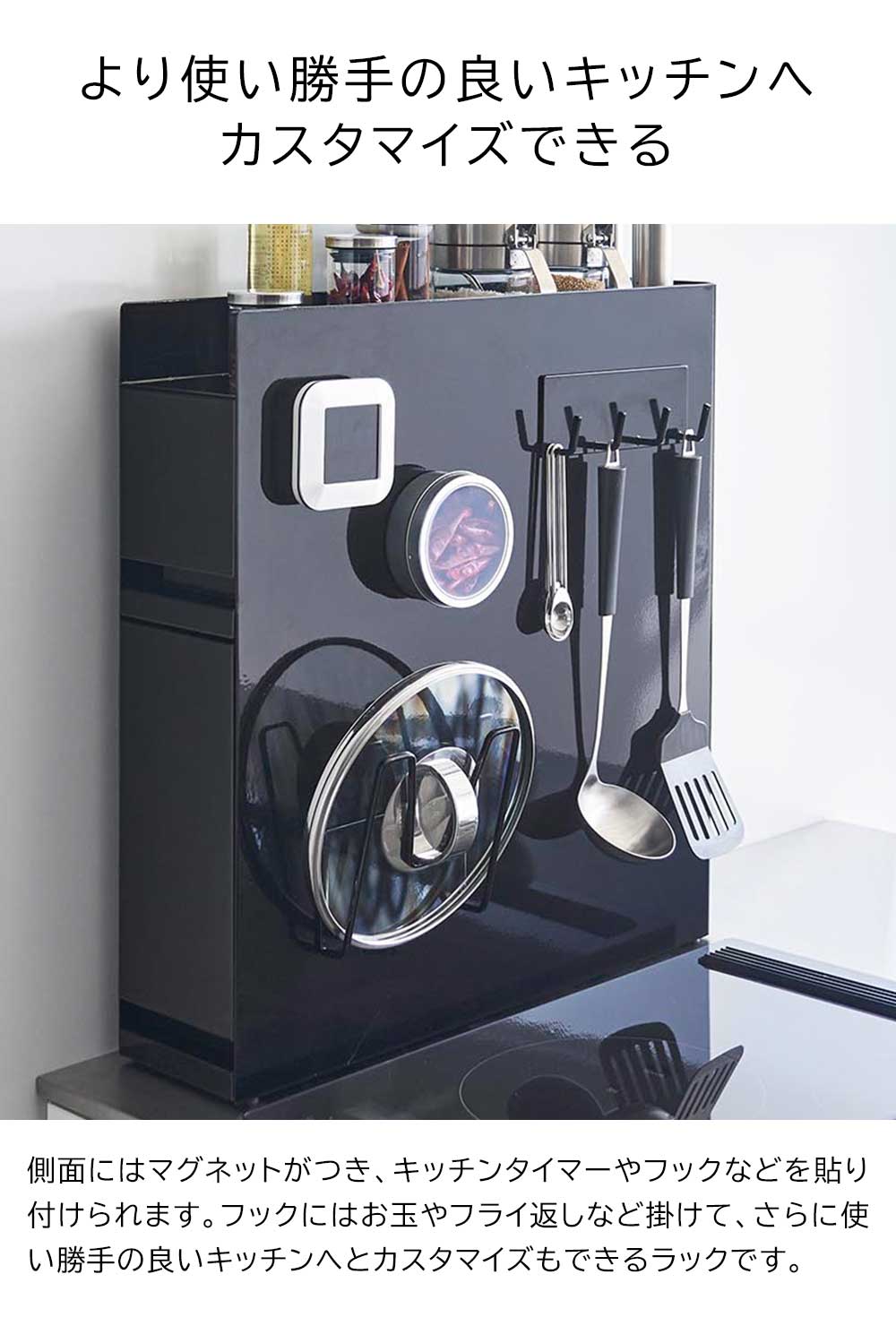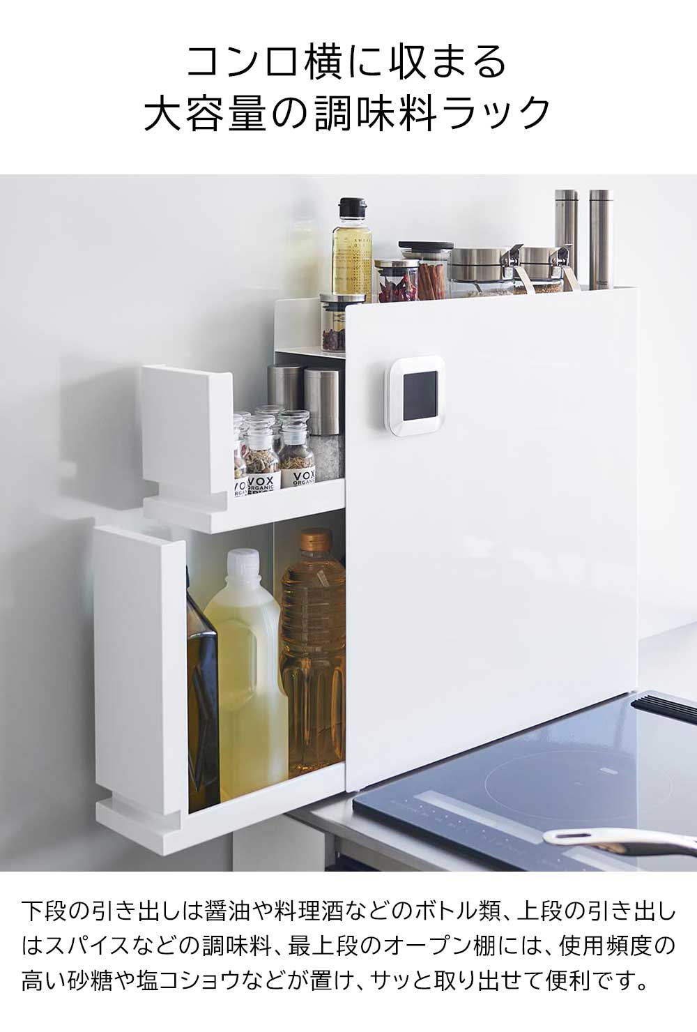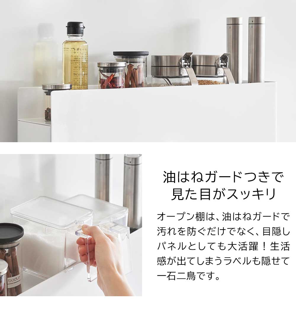 調味料は全員集合! 料理酒、スパイスや砂糖、塩コショウ…。お料理に欠かせない調味料ですが、細々と大量にあり、置き場所に困ったり、調理台に出しっぱなしだと汚れも気になります。収納してしまいたいけど、慌ただしいお料理中には、サッと取り出したい!そんな希望を叶えてくれるのが、調味料を大容量収納できる「隠せる調味料ラック 2段」です。この調味料ラックは、コンロ横に収まるスリムな引き出し式のラックで、下段の引き出しは、みりんや料理酒などのボトル類、上段の引き出しは、スパイスなどの調味料が収納できます。さらに、最上段のオープン棚にも収納可能で、使用頻度の高い砂糖や塩コショウなどが置け、すぐ取り出せて便利です。また、シンプルなデザインのラックは、大量の調味料を隠して収納できるので、生活感もなくなり、スッキリ整ったキッチンに生まれ変わります。光沢があり高級感のある本体は、汚れを簡単に拭き取れてお手入れがラクです。側面にはマグネットがつき、キッチンタイマーやフックを貼り付けられます。フックにはお玉やフライ返しなどのキッチンツールなど掛けて、さらに使い勝手の良いキッチンへとカスタマイズもできるラックです。 ![]() ![]() ![]() ![]() ![]() ![]() ![]() ![]() ![]() ![]() ![]() ![]() ![]() |