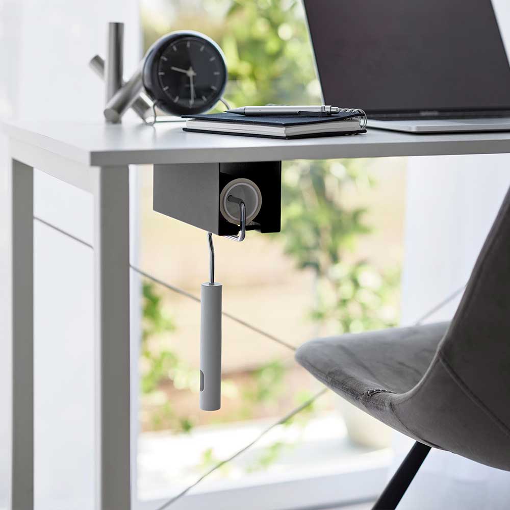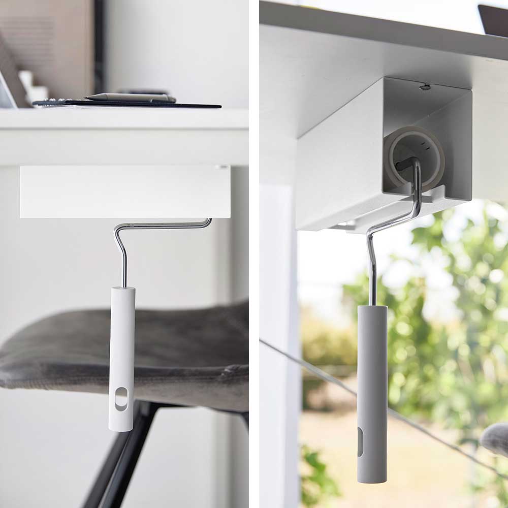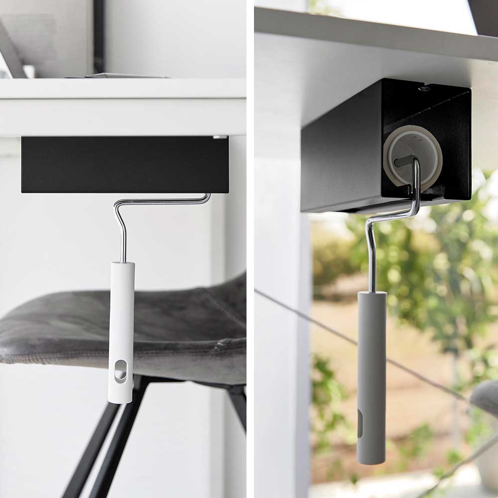転がすだけでゴミが取れてとっても便利なカーペットクリーナーですが、収納場所は決まっていますか?こちらのホルダーを使えばテーブル下のデッドスペースがカーペットクリーナーの定位置に。テーブル下は、ほこりもかかりにくく、生活感も隠せるので収納場所にぴったり!左右どちらからも収納でき、出し入れもスムーズなので使いたい時にサッと手に取れてとっても便利です。