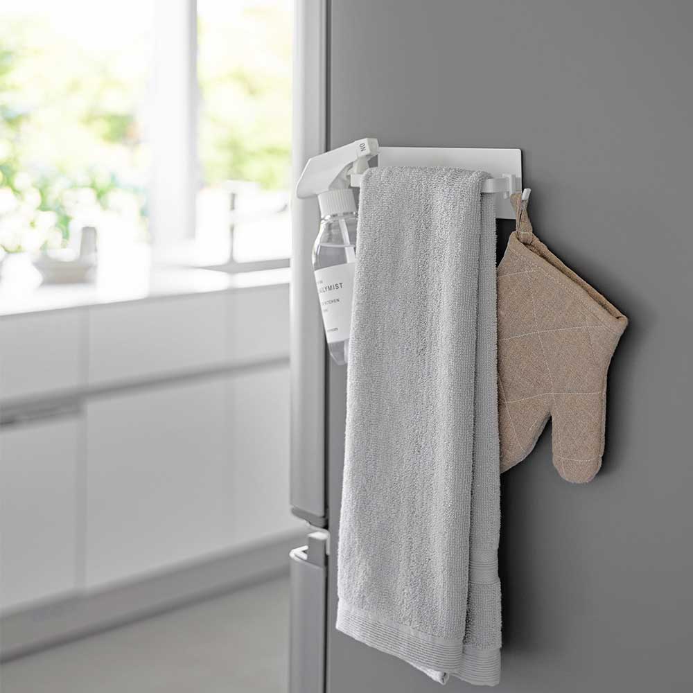 マグネットがつく壁面に! マグネットのつくキッチンパネルや冷蔵庫、洗濯機にペタッと貼り付けるだけで設置できるタオルハンガーです。 キッチンでは、布巾やキッチンクリーナなどのスプレー類を掛けたり、付属のフックを利用してミトンや輪ゴムなどを引っ掛けて収納できます。ランドリールームや脱衣所では、洗濯用洗剤やバスクリーナー、フェイスタオルなどを掛ける場所にすると便利です。 幅約16.5cmとコンパクトなハンガーなので僅かなスペースに設置でき、手に取りやすい場所にアイテムを配置・収納することができます。 ![]() ![]() ![]() ![]() ![]() ![]() ![]() ![]() ![]() ![]() ![]() |