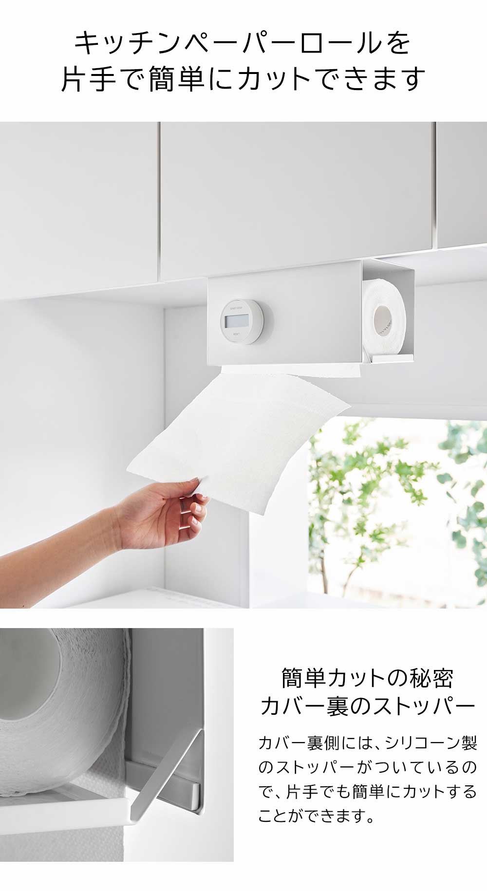 片手でカット戸棚下キッチンペーパーホルダー タワー カバー付き S ![]()