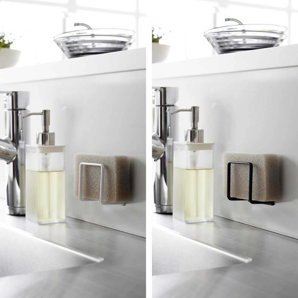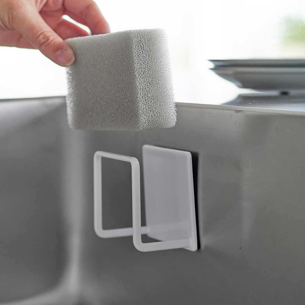 マグネットで浮かせて設置 キッチンパネルやシンク内にマグネットで簡単に取り付け可能なスポンジホルダー。スポンジを浮かせられるので、平置きで場所をとっていたスポンジをコンパクトに収納でき、シンクまわりがスッキリ整います。また、スポンジとホルダーの設置面が少ないので、水切れがよくぬめりにくいです。さらに浮かせて収納することで風通しがよくなり、よりキッチンを清潔に保てます。ホルダー本体はシンプルなデザインなので、お手入れがラク。スポンジだけでなく、シンクのお掃除中に排水溝のフタを置いたり、スクレーパーやゴム手袋などを掛けて水切りしたりとちょい置きにも便利です。 ![]() ![]() ![]() ![]() ![]() ![]() ![]() ![]() ![]() ![]() |