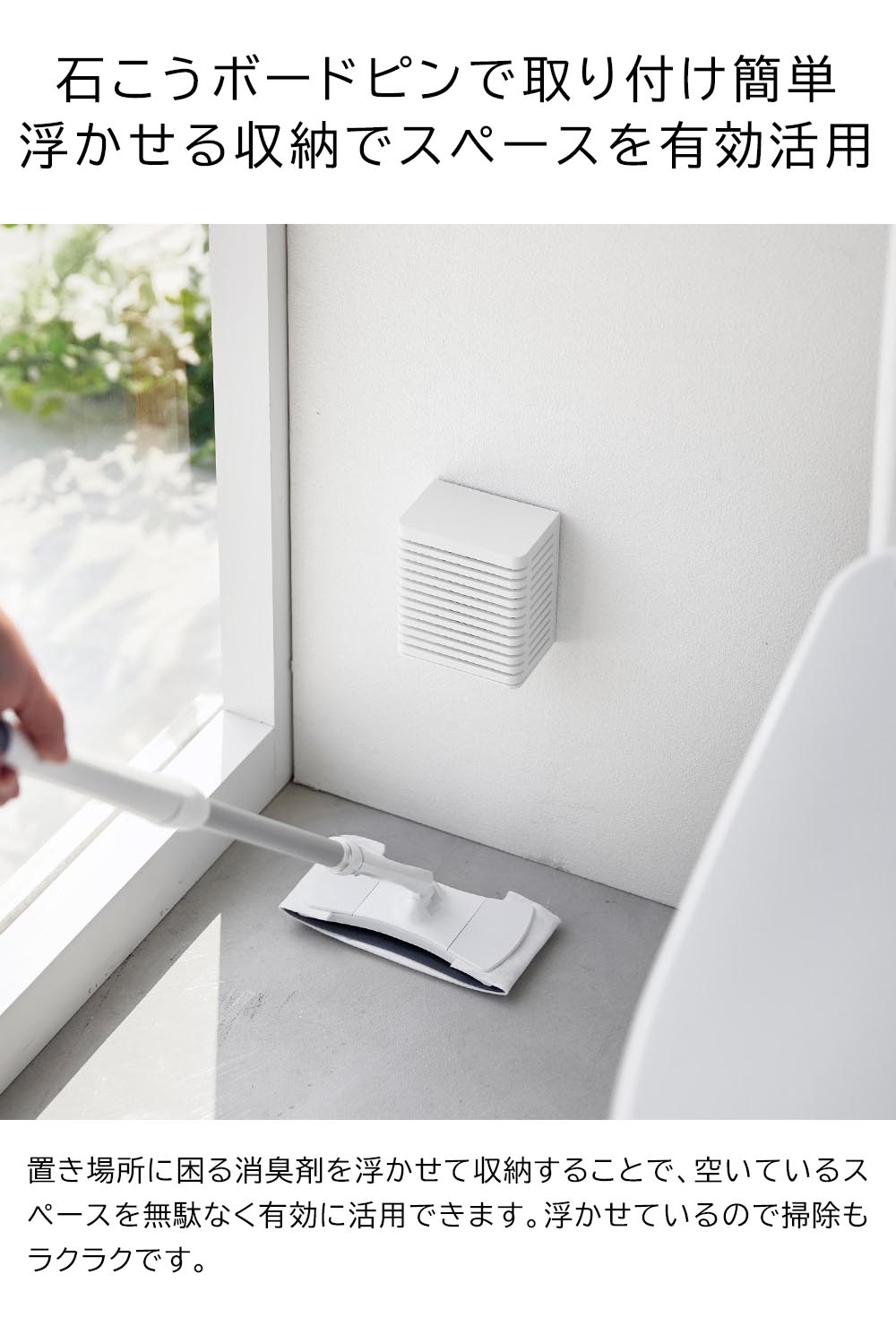 消臭剤の気になる生活感を 消臭剤をそのまま置くと、気になるのが生活感。そんな時は「石こうボード壁対応 消臭剤ケースS 」をおすすめします。付属の石こうボードピンで壁面に取り付ければ設置完了!スライド式のカバーをずらして消臭剤の容器をまるごと置き、カバーをかぶせるだけで簡単に生活感を一掃してくれます。浮かせて収納できるので、限られたスペースを有効に活用でき、掃除もラクラク!また、置いても使える2WAYタイプなので、下駄箱の上や中などの様々な場所に対応。どんな場所にもスッとなじむシンプルでスタイリッシュなデザインも魅力的です。 ![]() ![]() ![]() ![]() ![]() ![]() ![]() ![]() ![]() ![]() ![]() ![]() ![]() |