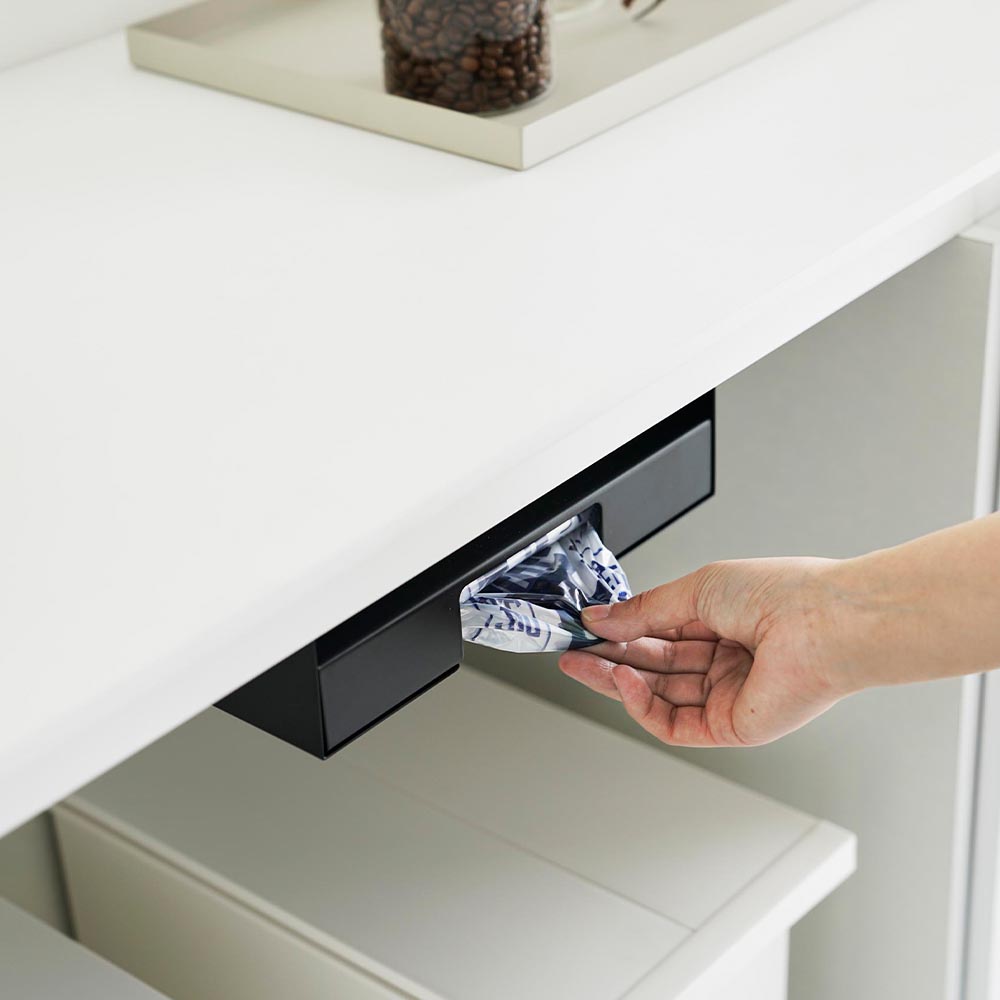 棚下の空きスペースに キッチン棚下やカウンター下などの天板裏に取り付けるゴミ袋収納ホルダーです。ゴミ箱の近くにゴミ袋を収納しておくと、取り替えもスムーズになり便利です。本体には、ストッパーが付いていて、袋が1枚ずつ片手でサッと引き出すことができます。ストッパーは外して使用もできるので、袋の種類や容量などに合わせて、使いやすい形状をお選びいただけます。ネジ留め設置だから、しっかりとした固定ができ安心です。 ![]() ![]() ![]() ![]() ![]() ![]() ![]() ![]() ![]() ![]() |