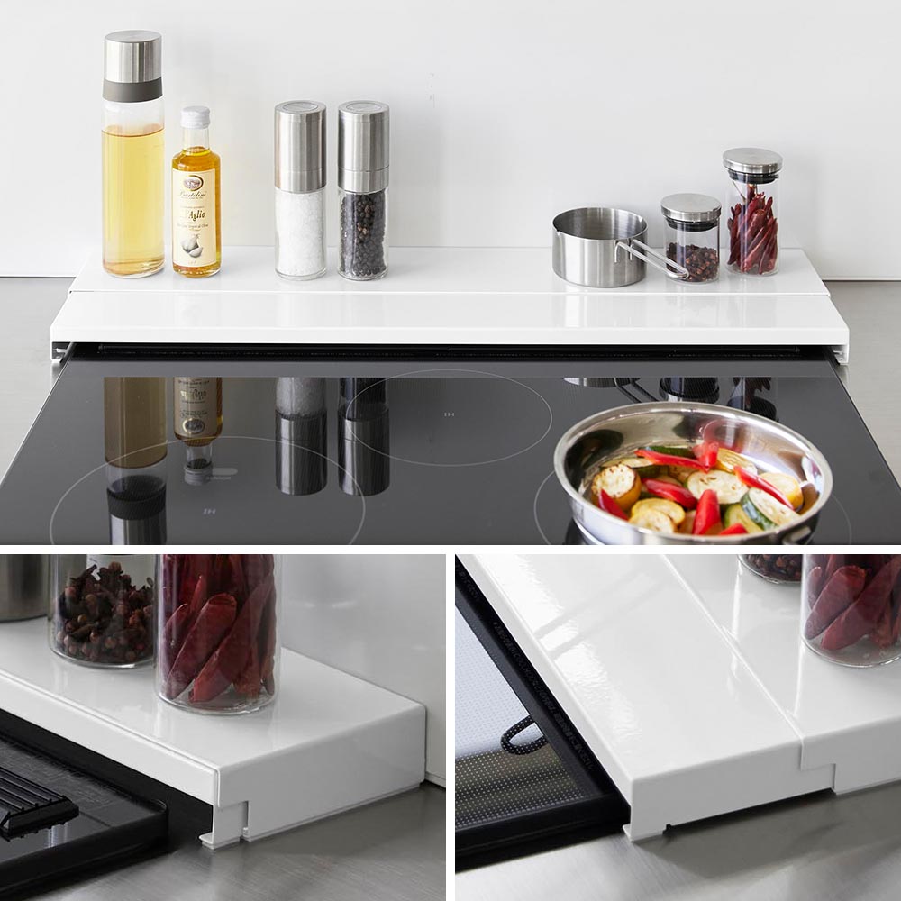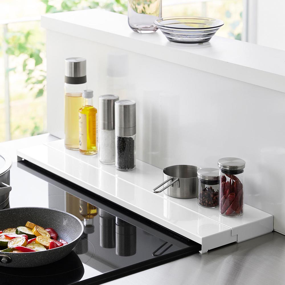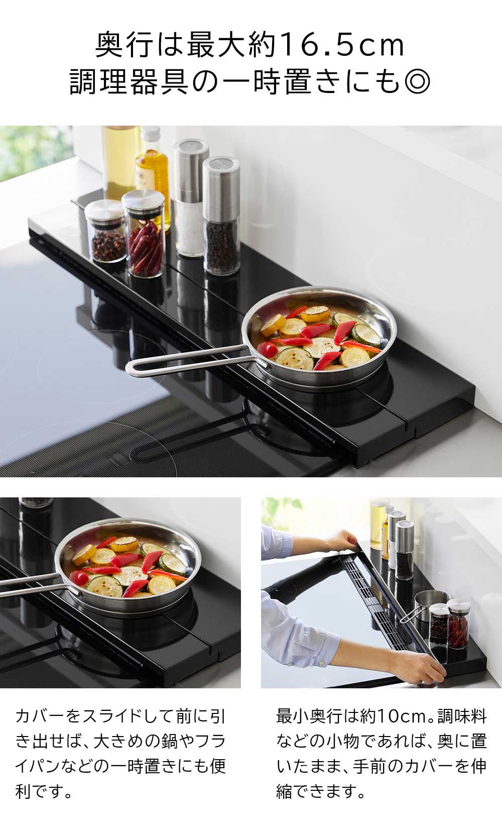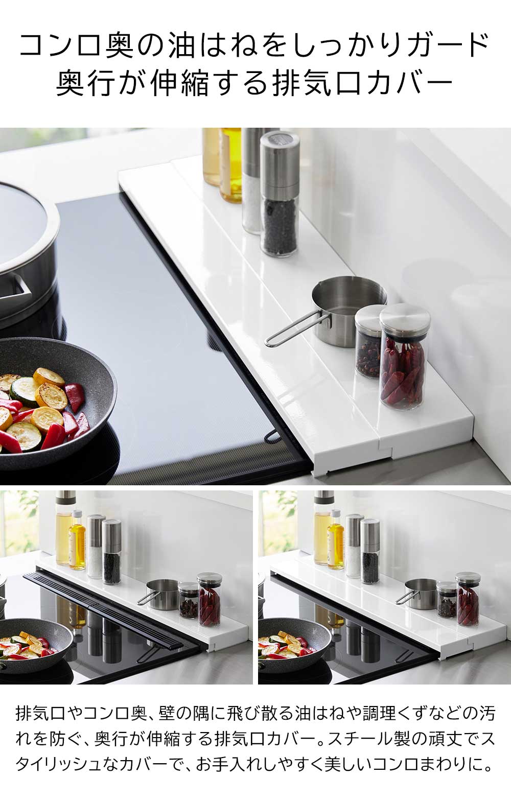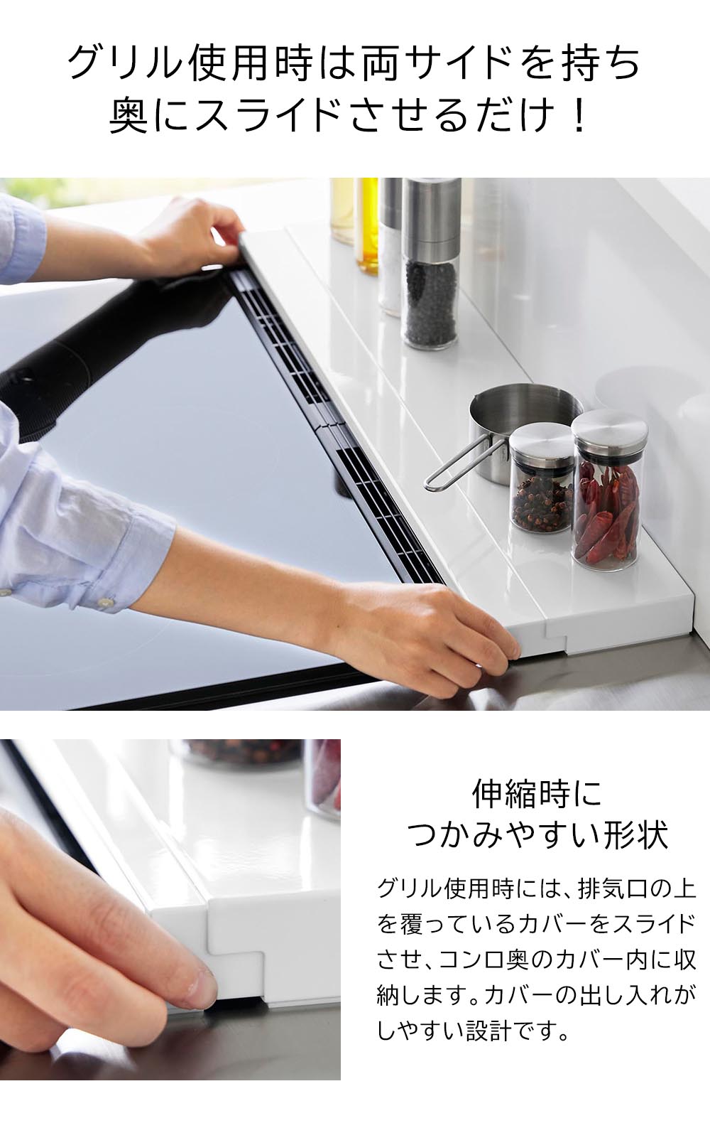 奥行が伸縮して ビルトインガスコンロやIHクッキングヒーター専用の幅60cm対応排気口カバーです。 こちらの排気口カバーは、奥行が約10~16.5cmの間で伸縮します。グリル使用時には排気口の上を解放し、使用していない時にはカバーを引き出して排気口の上を覆うことができます。 カバーを排気口の上まで覆ってしまえば、排気口やコンロ奥に飛び散る油はねや調理くずを広範囲にシャットアウトすることができ、掃除も大変ラクになります。カバーは分解して洗うことができるのでお手入れも簡単!いつも綺麗にご使用いただけます。 カバー上はコンロ奥ラックとしても活用でき、スパイスボトルなどの小物を置いたり、大きめの鍋やフライパンの一時置きに使うなど、調理の際にもとても便利! 生活感のないシンプルで上質なデザインなので、キッチンがスッキリとした空間になります。 ![]() ![]() ![]() ![]() ![]() ![]() ![]() ![]() ![]() ![]() ![]() ![]() |