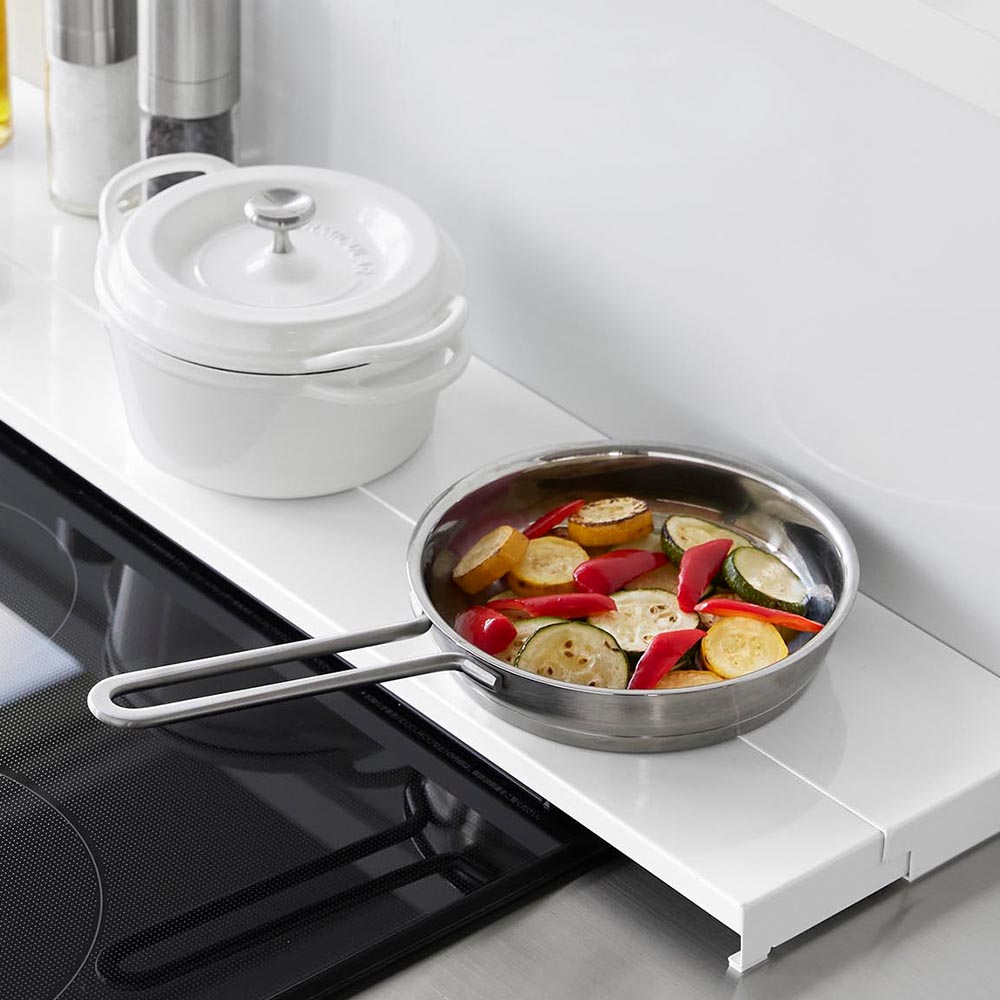 奥行が伸縮して ビルトインガスコンロやIHクッキングヒーター専用の幅75cm対応排気口カバーです。 こちらの排気口カバーは、奥行が約10~16.5cmの間で伸縮します。グリル使用時には排気口の上を解放し、使用していない時にはカバーを引き出して排気口の上を覆うことができます。 カバーを排気口の上まで覆ってしまえば、排気口やコンロ奥に飛び散る油はねや調理くずを広範囲にシャットアウトすることができ、掃除も大変ラクになります。カバーは分解して洗うことができるのでお手入れも簡単!いつも綺麗にご使用いただけます。 カバー上はコンロ奥ラックとしても活用でき、スパイスボトルなどの小物を置いたり、大きめの鍋やフライパンの一時置きに使うなど、調理の際にもとても便利! 生活感のないシンプルで上質なデザインなので、キッチンがスッキリとした空間になります。 ![]() ![]() ![]() ![]() ![]() ![]() ![]() ![]() ![]() ![]() ![]() ![]() |