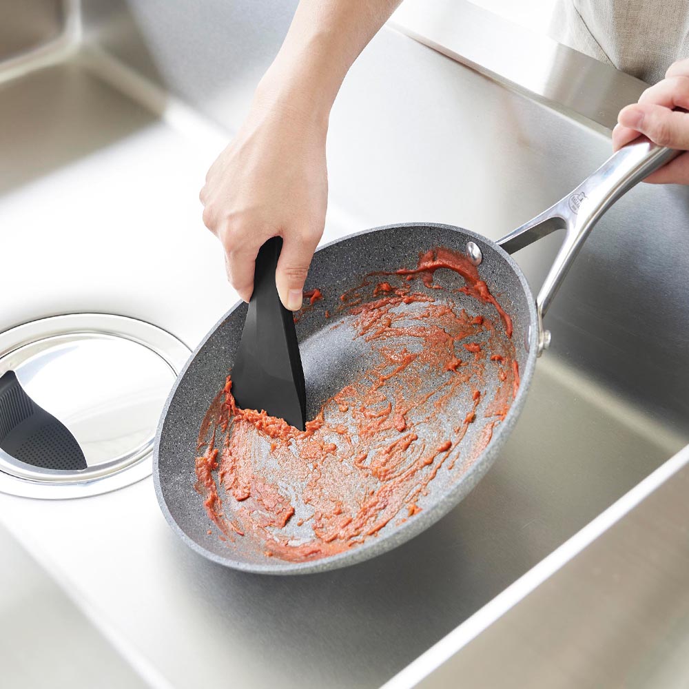 食材のこびりつきや汚れも 調理中も後も、手のひらサイズのスクレーパーが大活躍!シリコーン製なので、食器や調理器具を傷めずに食材をスルッと落とすことができます。スクレーパーを使って予洗いすることで少ない水や洗剤で洗えます。クリーム状の食材を別の容器に移す時には、食材を余すところなくかき集められるので食材を無駄にしません。また、キッチンのコンロやシンクのお掃除にも、スクレーパーのエッジとカーブ部分がピタッとフィットして汚れを取り除いてくれます。持ち手もあるので、汚れが手に付きにくいのも便利です。スクレーパーはマグネット内蔵。マグネットが付く壁面にペタッと付けても良し、持ち手のフック穴に掛けて吊り下げても良しと2通りの収納方法から好みに合わせて選べます。 ![]() ![]() ![]() ![]() ![]() ![]() ![]() ![]() ![]() ![]() ![]() |