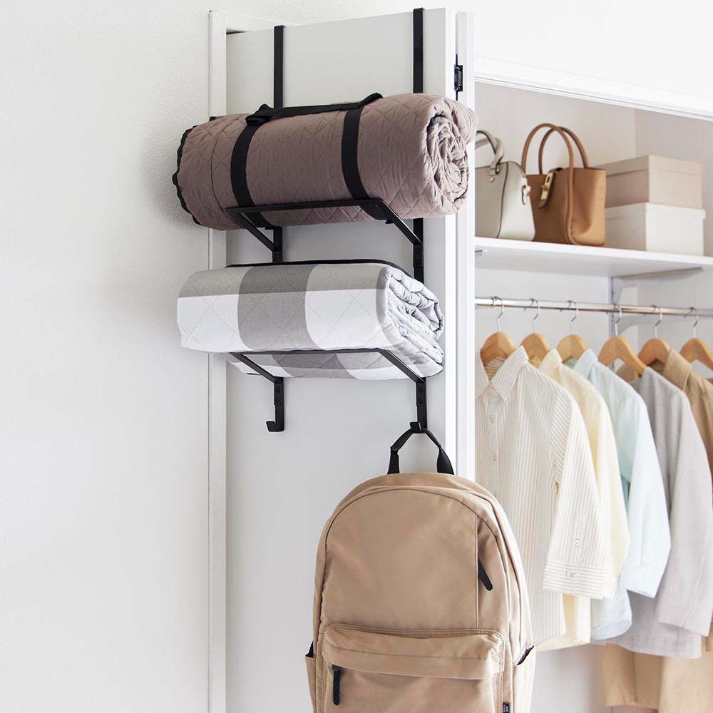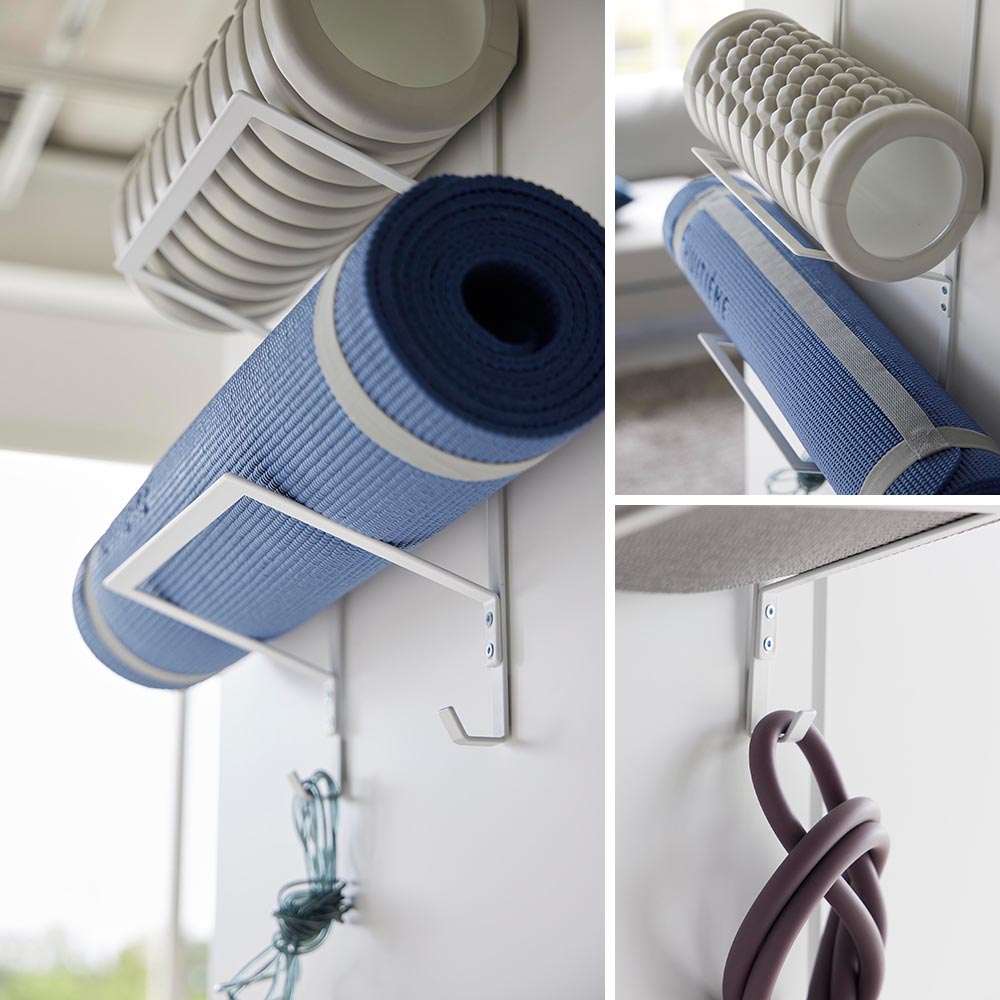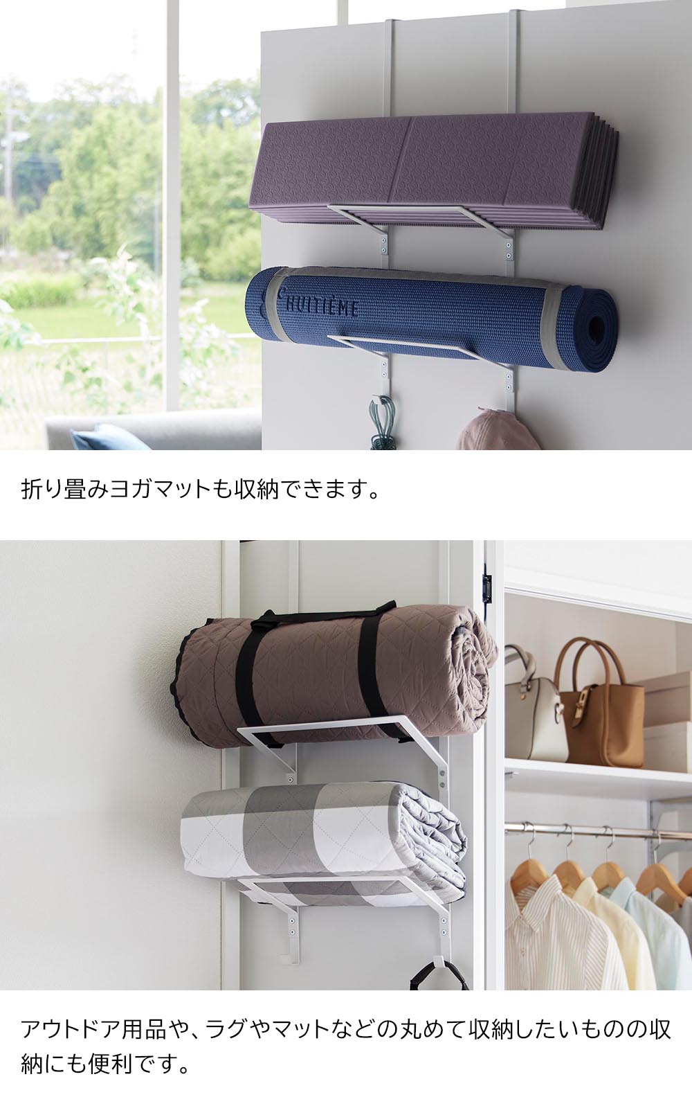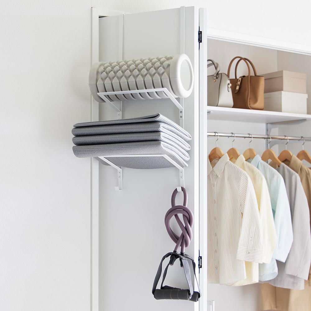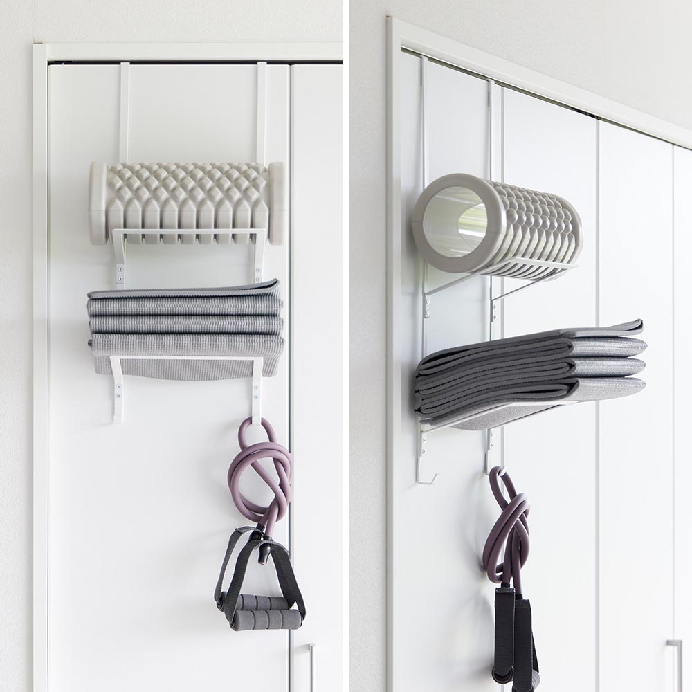 ドアやクローゼット扉に ヨガマットやフォームローラーなどのかさばるフィットネスグッズを、ドアやクローゼット扉にまとめて収納できる、フック付き収納ハンガーです。設置は簡単!ドアやクローゼットに収納ハンガーを引っ掛けるだけ。 2段の収納部分には傾斜がついており、丸いものを収納しても落ちにくくなっています。フィットネスグッズ以外にも、ラグやマットなどのアウトドア用品の収納にも便利です。 ハンガーの下には2つのフック付き。なわとびやトレーニングチューブ、キャップやリュックなどを引っ掛け収納できます。 扉や収納するアイテムの傷つきを防ぐクッションが付属されているので、安心してご使用いただけます。 ![]() ![]() ![]() ![]() ![]() ![]() ![]() ![]() ![]() ![]() ![]() ![]() |