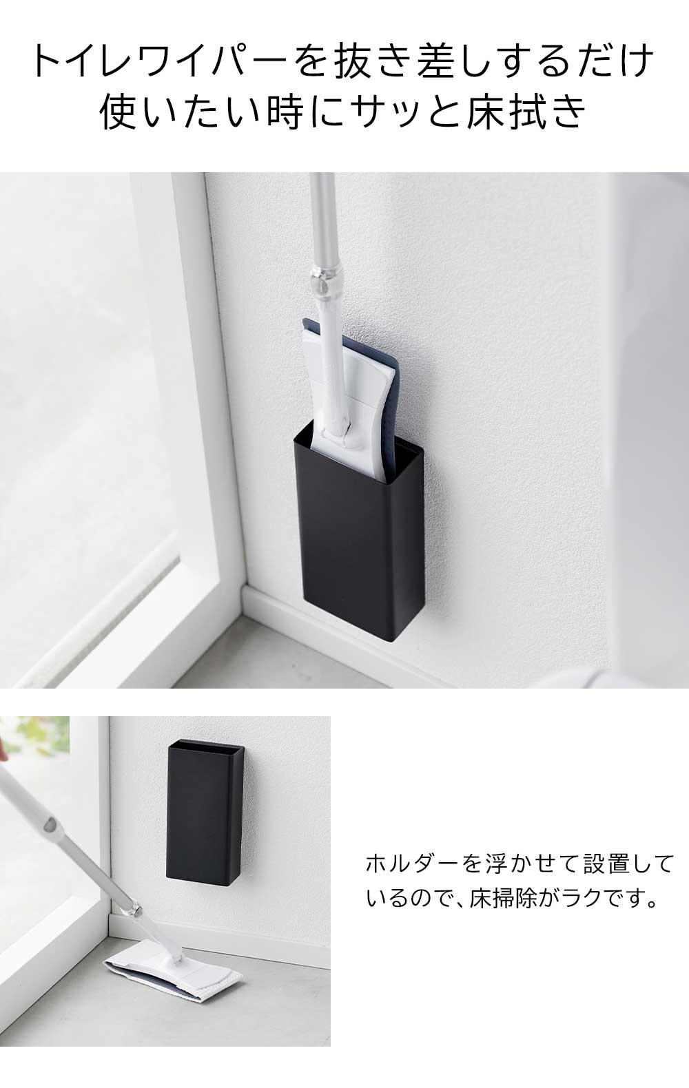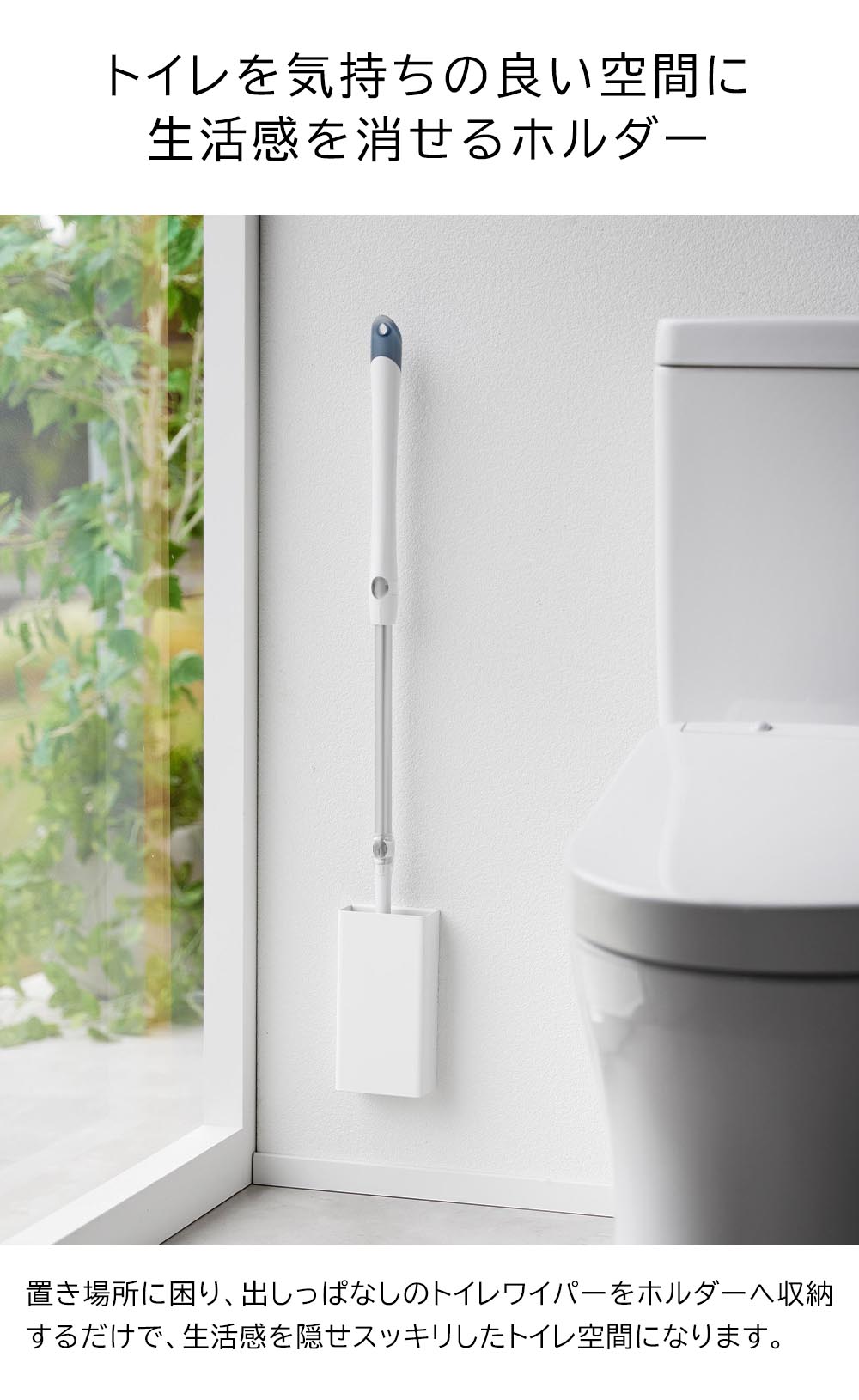 出しっぱなしの トイレワイパーを浮かせて収納できるシンプルでスリムなホルダー。跡が目立ちにくい石こうボードピンで取り付け可能です。置き場所に困り、出しっぱなしのトイレワイパーをホルダーへ差し込むだけで、生活感を隠せてスッキリしたトイレになります。ホルダーは浮かせて設置するのでトイレ掃除の邪魔にならず、使いたい時にすぐに取り出しサッと床拭きできます。ホルダーがしっかりとホールドするので、トイレワイパーが倒れかかるのを防ぎます。 ![]() ![]() ![]() ![]() ![]() ![]() ![]() ![]() ![]() |