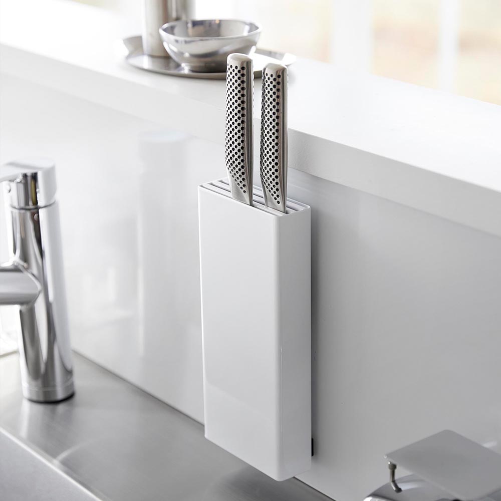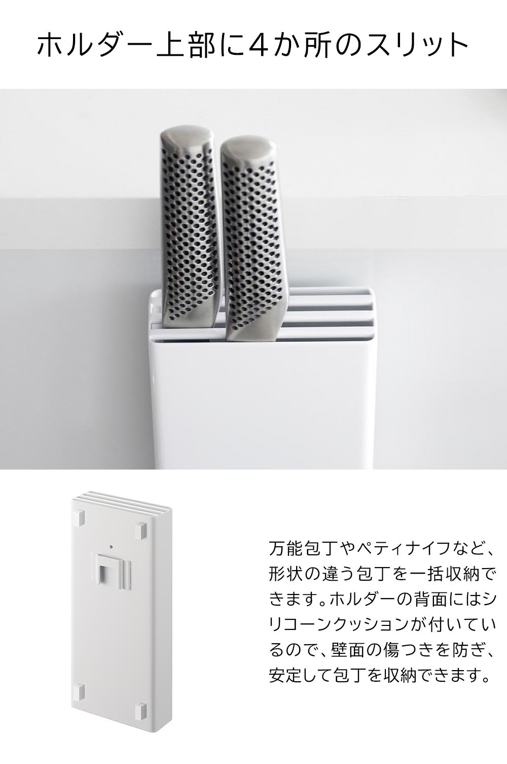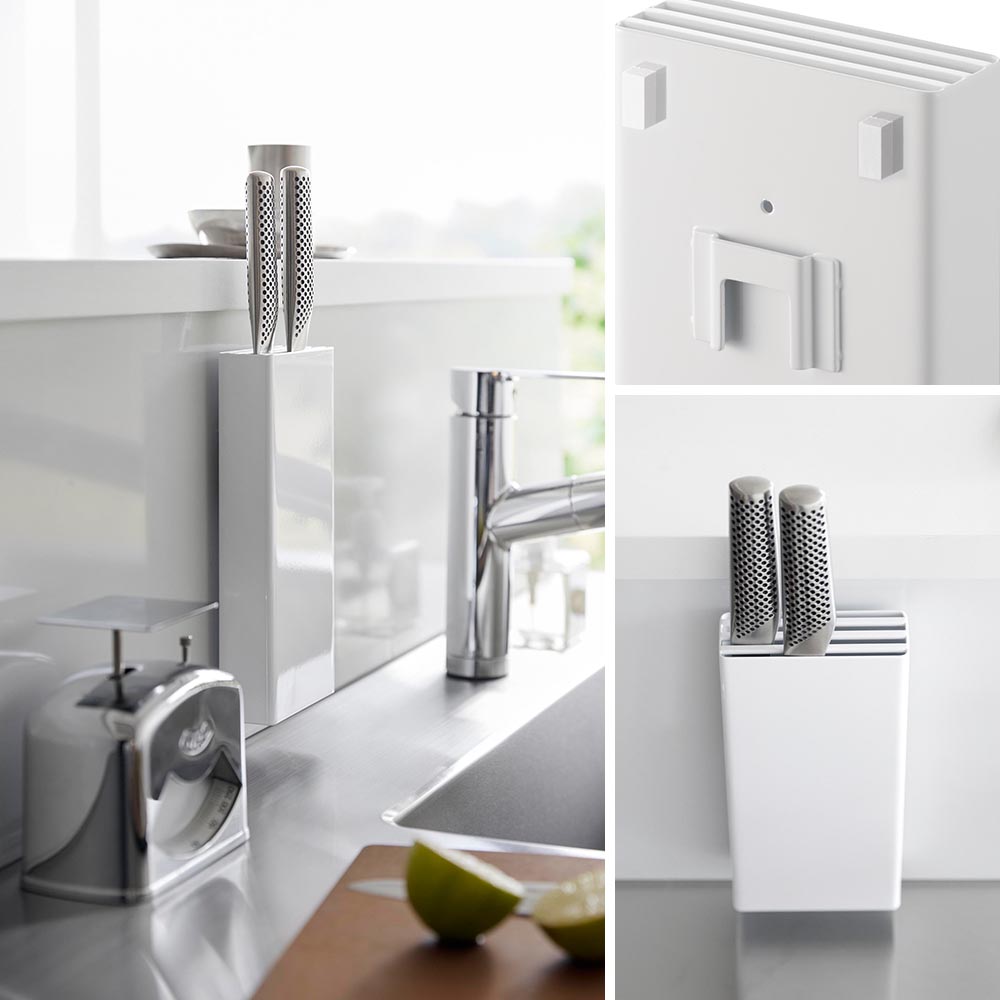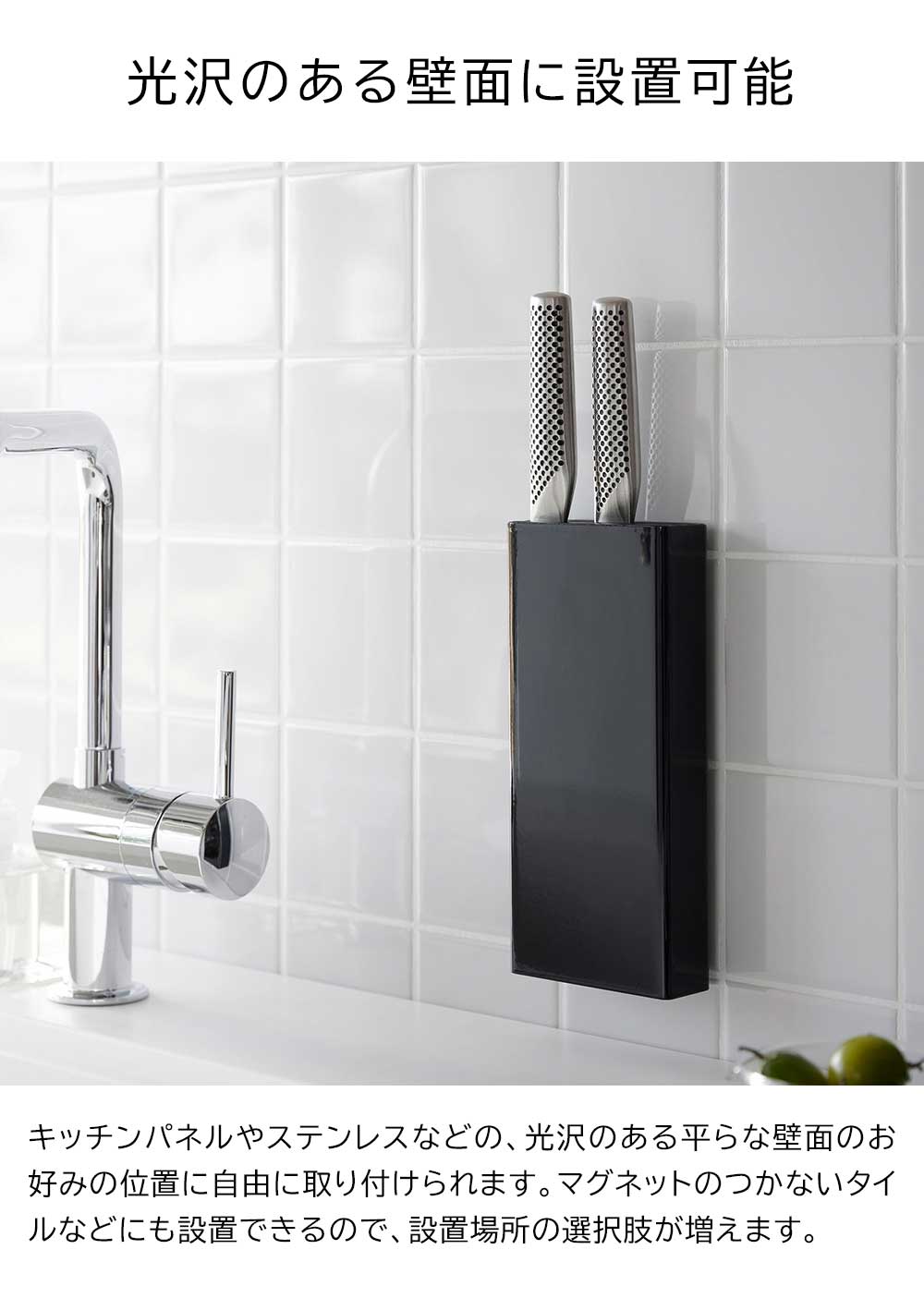 フィルムフックで簡単設置 キッチンパネルやタイルなど、光沢のある壁面のお好みの位置に設置できる、フィルムフック取り付け型の包丁ホルダーです。マグネットのつかない壁面にも取り付けられるため、設置場所の選択肢が増えます。 サッと包丁を手に取れる場所に設置すれば、調理中や後片付けの作業効率も上がります。ホルダー上部には4か所のスリットがあり、サイズや形状違いの包丁をまとめて収納できます。 浮かせる収納だから作業エリアは広々!キッチンのお掃除もラクラクです。 ホルダー背面には、壁の傷つきを防ぎ、ホルダーを安定させるシリコーンクッションが付いているので使用時も安心! シンプルでスタイリッシュな外観だから生活感が出ず、キッチンに自然に馴染みます。 ![]() ![]() ![]() ![]() ![]() ![]() ![]() ![]() ![]() ![]() ![]() |