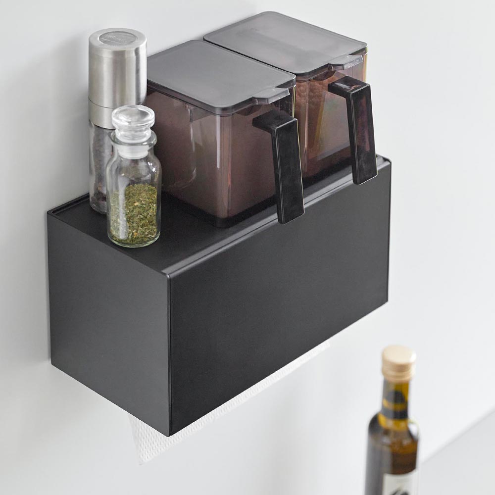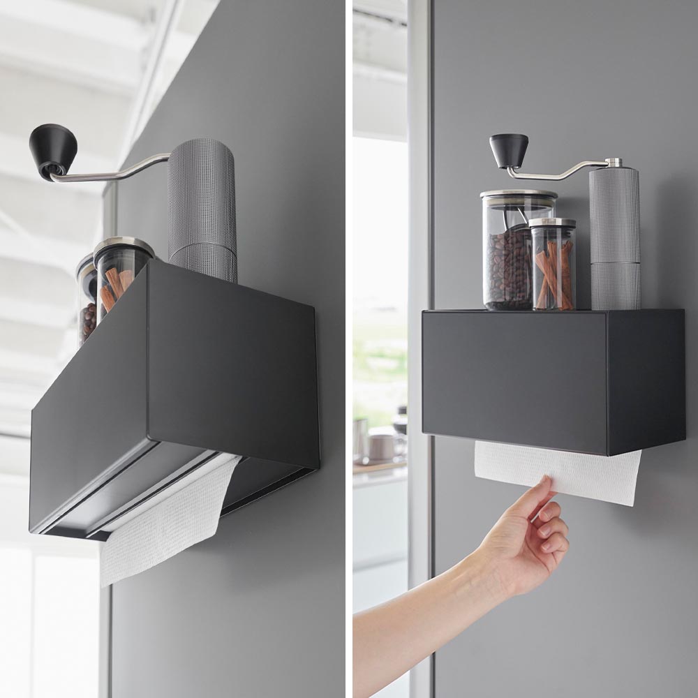 マグネットで壁面設置 ペーパータオルやキッチンペーパーを壁面に設置できるシンプルなペーパーディスペンサーです。 取り付け簡単なマグネットでキッチンパネルや冷蔵庫などお好みの場所に取り付けて、ペーパーをセットすればすぐに使えます。 底面からペーパーを簡単に引き出せて使いやすい設計。 前面の開口部が広いので、補充や取り換えに手間取ることはありません。 上面はトレーになっていて、キッチン小物やスパイスボトルを置くのに便利です。 ペーパーを個包装から出してそのままセットできる他、ボックスタイプ、ソフトパックタイプ、ロールタイプのペーパーに対応しているので、幅広くお使いいただけます。 ![]() ![]() ![]() ![]() ![]() ![]() ![]() ![]() ![]() ![]() ![]() ![]() |