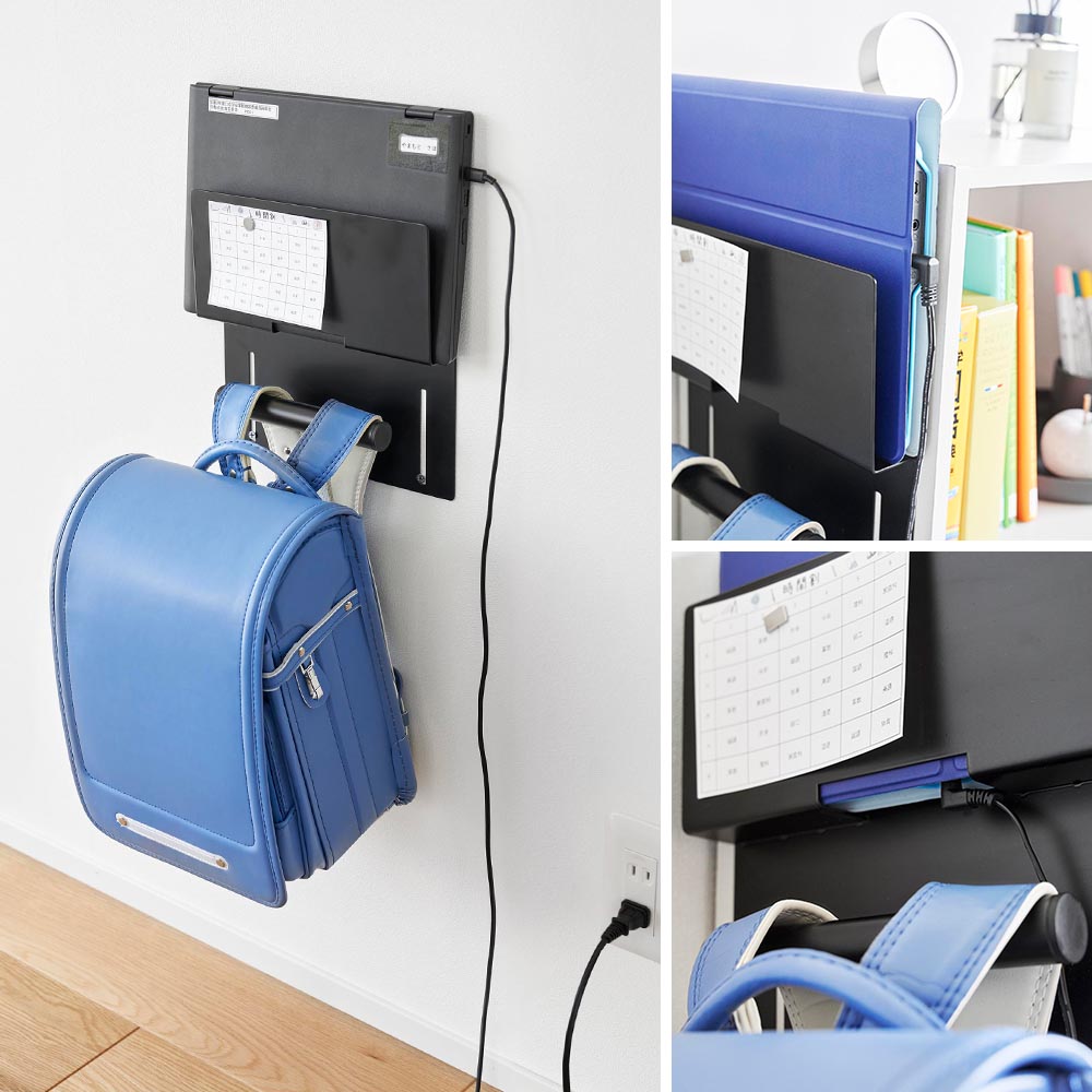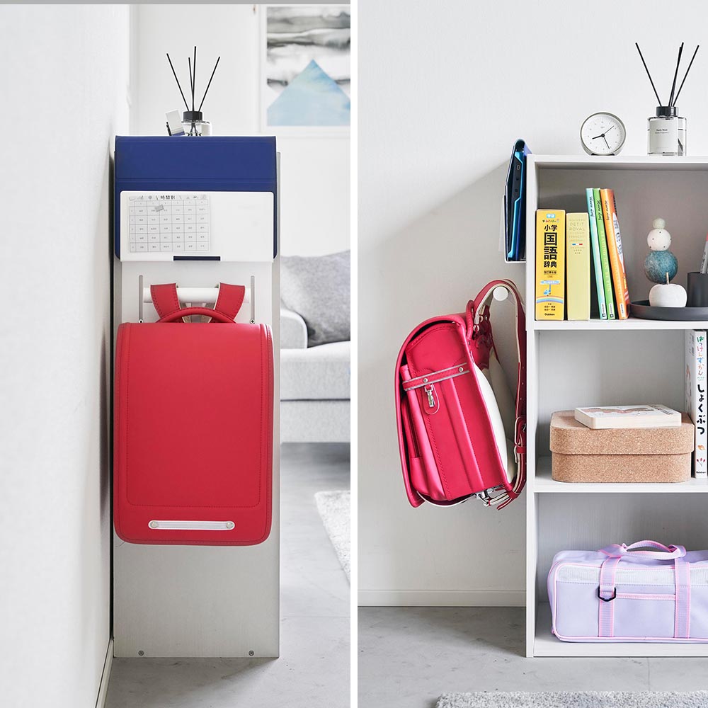 カラーボックス横を お子様の必需品であるランドセルと学習用タブレットの置き場所を、カラーボックス横に簡単に作れるタブレット&ランドセルホルダーです。 カラーボックスで使われているネジを利用し、ホルダーを取り付けるだけで、置き場所に困るランドセルや学習用タブレットなどのかさばるアイテムに定位置ができます。木ネジと石こうボード用アンカーボルトも付属しているので、壁面への取り付けも可能です。 学習用タブレットは充電しながらタブレットホルダーに収納できます。また、ホルダーにはマグネットが付くため、前面にお手持ちのマグネットで時間割表などを貼っておくと、更に便利に活用できます。 カラーボックスまわりに通学に必要な物をまとめて収納しておくと、準備がラクになり、紛失や忘れ物の心配も減りますね! ランドセル以外に、リュックを収納するのにも便利です。 ![]() ![]() ![]() ![]() ![]() ![]() ![]() ![]() ![]() ![]() ![]() ![]() ![]() |