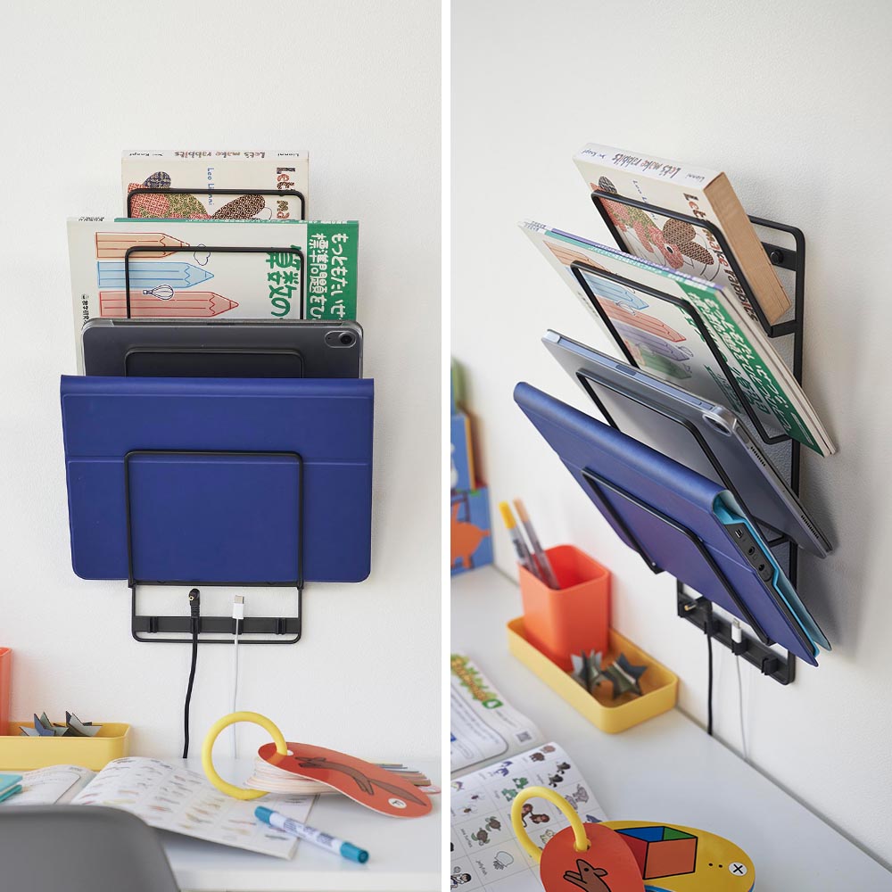 タブレットやノートPCを 置き場所に困るノートPCや学習用タブレットを、壁面に4台まとめて収納できるホルダーです。壁の穴が目立ちにくい石こうボードピンで設置できます。 壁のデッドスペースを活用するので、机や棚に平置きするための大きなスペースを確保する必要もなく、使用後はスッキリ整理整頓! 出し入れがスムーズな傾斜のついたホルダーで、収納したまま充電もできます。 本体の下には、充電ケーブルの差し込み口をホールドできるシリコーンホルダーが付いており、使用しない時も充電ケーブルが迷子になる心配がありません。 ブックスタンドとしてもご使用いただけます。 ![]() ![]() ![]() ![]() ![]() ![]() ![]() ![]() ![]() ![]() ![]() ![]() |