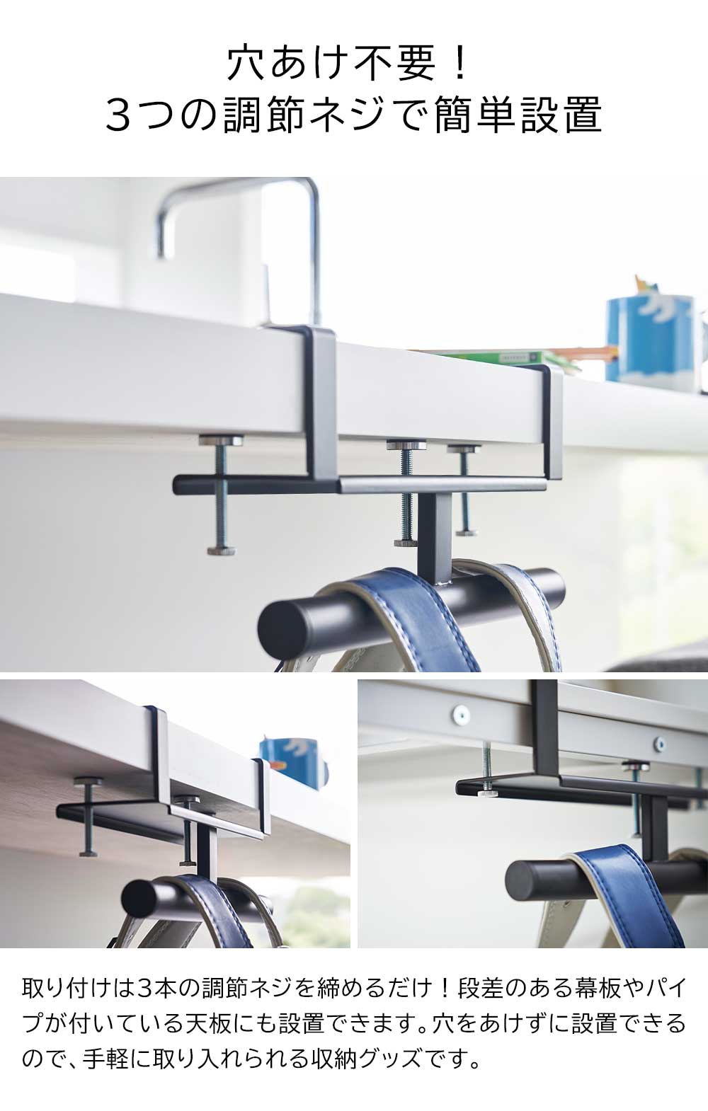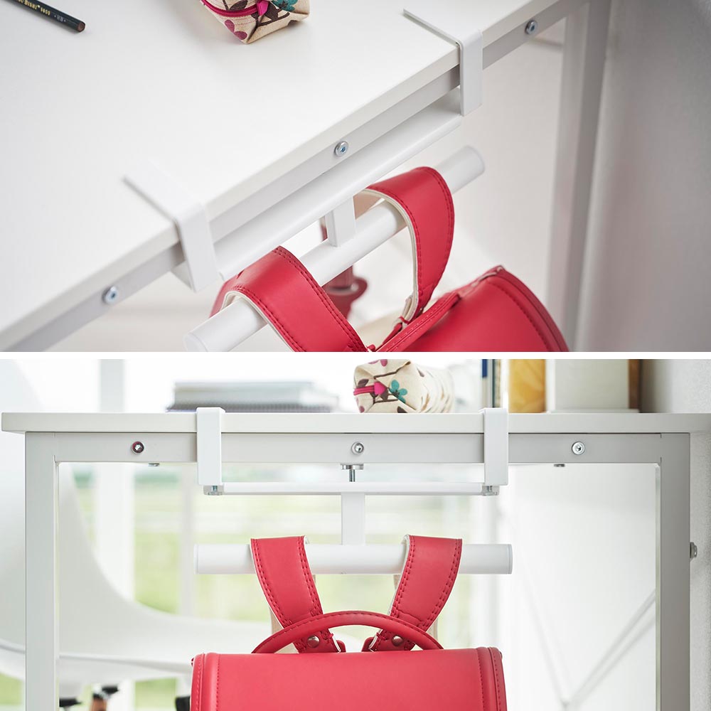 調節ネジで簡単取り付け デスクやキッチンカウンターの天板に調節ネジで簡単に取り付けできる、便利なランドセル・リュック収納ハンガーです。 大きくて収納場所に困ってしまうランドセルの定位置を、お子様がすぐに手に取れるデスク横に作ってあげることで、学習環境が整い、登校の準備もスムーズになります。 ハンガーに掛けたままランドセルを開き、勉強道具を出し入れできるので、「宿題をしよう」と思った時にすぐ取り出して勉強を始められ、翌日の持ち物の準備もラクにできます。 設置は簡単!3本の調節ネジで天板に固定するだけ。天板に穴をあける必要がありません。 段差のある幕板やパイプが付いている天板にも調節ネジでしっかりと固定できます。 ![]() ![]() ![]() ![]() ![]() ![]() ![]() ![]() ![]() ![]() ![]() ![]() ![]() ![]() |