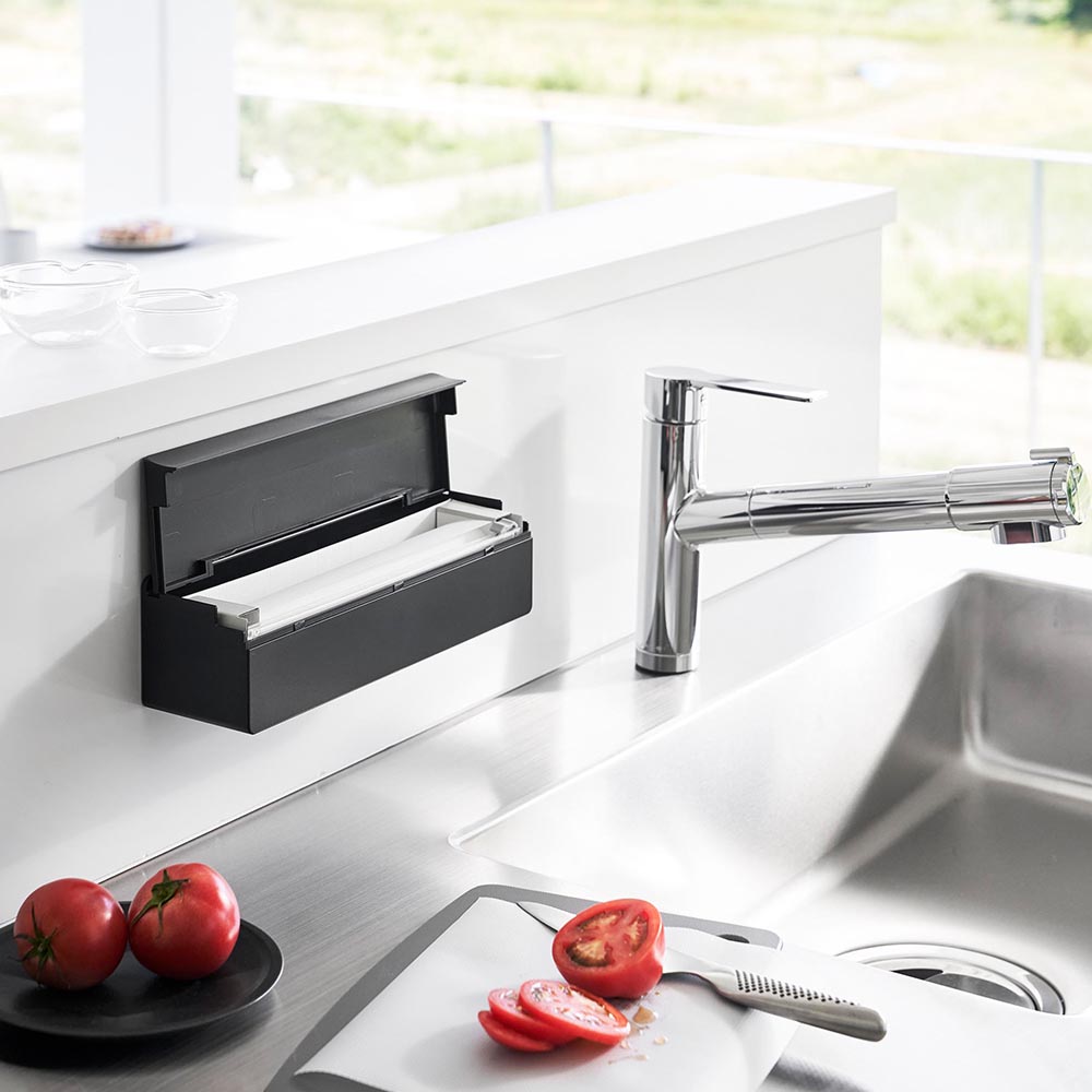 衛生的で後片付けがラクな 衛生的で便利なまな板シートを、使いたいと思った時にすぐ手に取れる位置に収納できる、フィルムフック設置型のまな板シート専用ケースです。 フィルムフックで取り付けるので、マグネットのつかないタイルやガラス面などの光沢のある面にも設置できます。 ケースには、市販のまな板シートを箱ごと収納することができ、蓋の開け閉めもスムーズ。 まな板シートを使う時は、ケースに入れたままシートを引き出し、スライダーをすべらせてカットできます。 デッドスペースを活用するので邪魔にならず、シンプルで生活感を感じさせないデザインで空間にスッキリと馴染みます。 ![]() ![]() ![]() ![]() ![]() ![]() ![]() ![]() ![]() ![]() ![]() |