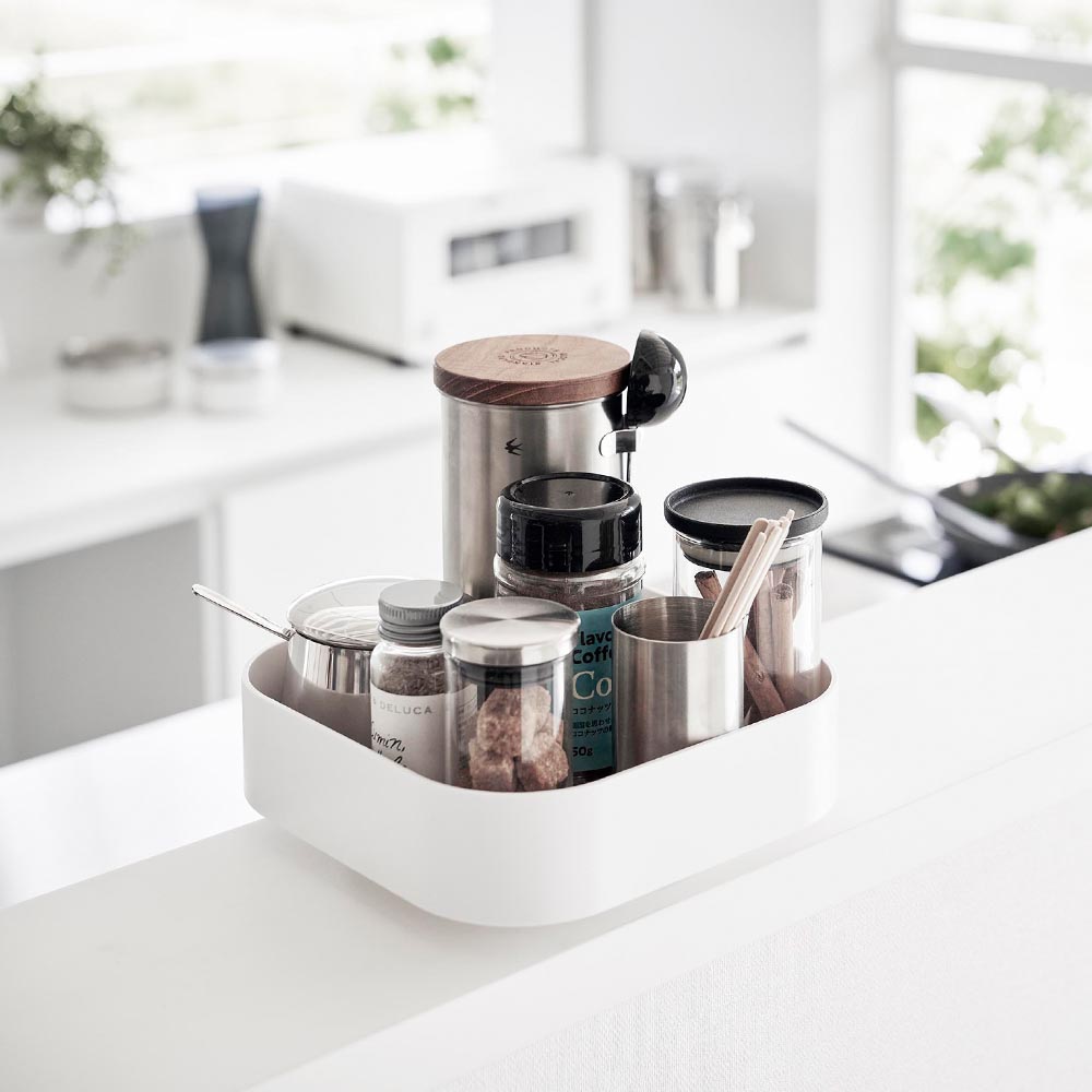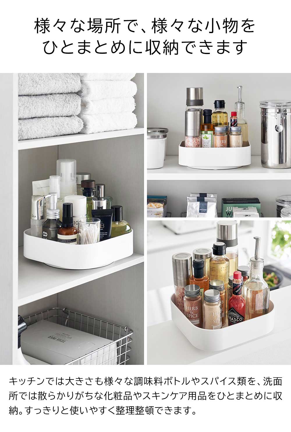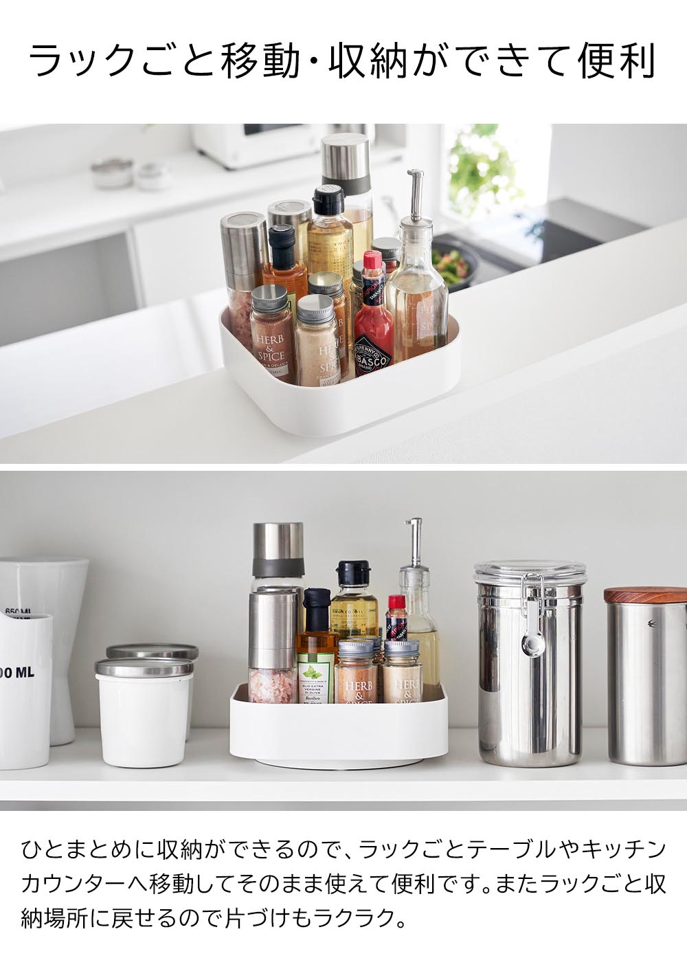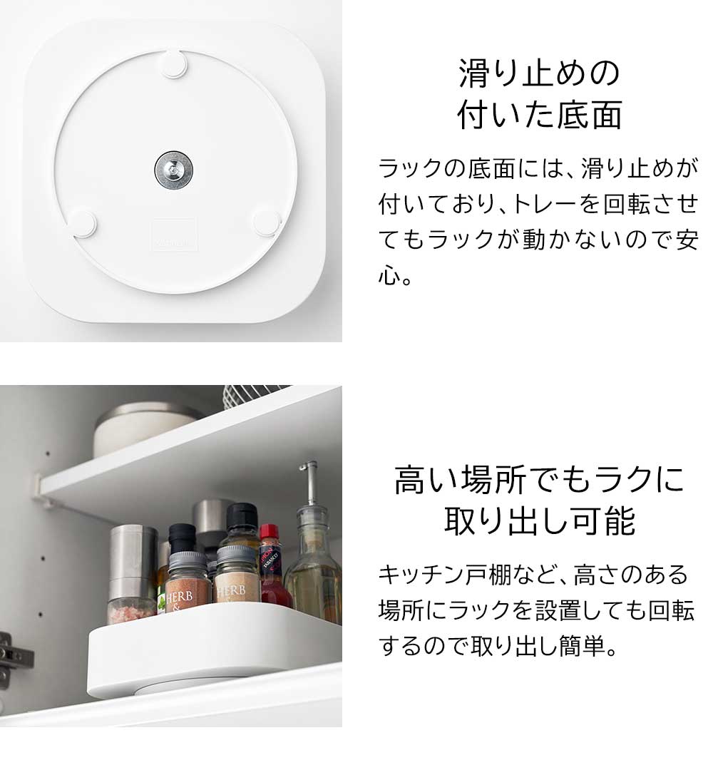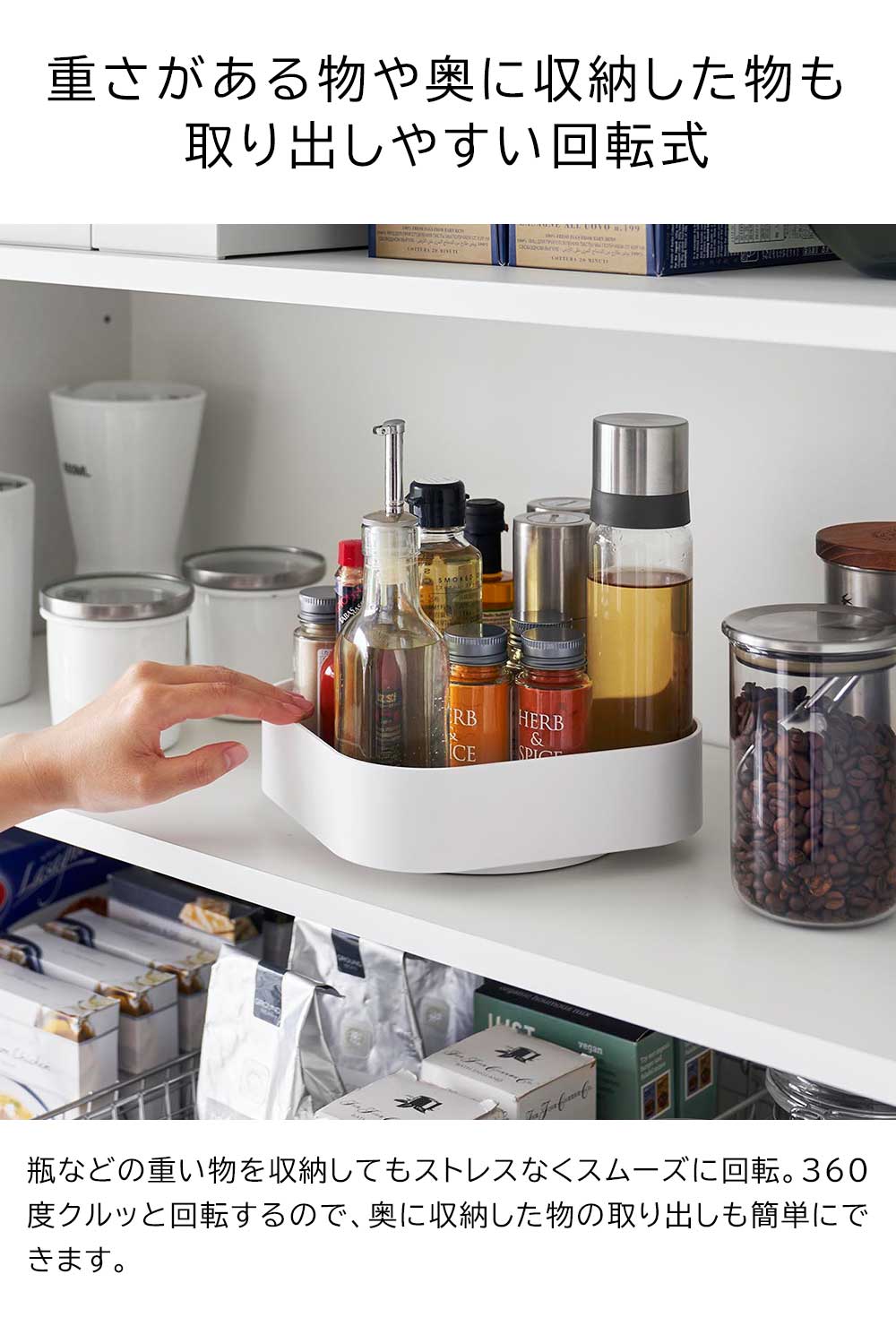 360度回転!奥に収納した 360度クルっと回転して取り出しやすく、様々な場所で活躍する回転式のスクエア型収納ラックです。瓶など重い物を収納してもストレスなくスムーズに回転。奥に収納した物の取り出しも簡単なので、戸棚など高い場所の収納にもおすすめ!様々な大きさの調味料ボトルやスパイスでゴチャついた印象のキッチンや、細々と散らかる洗面所のスキンケア用品などの一括収納&整理整頓にピッタリです。ひとまとめに収納できるので、テーブルやカウンターにラックごと移動ができて便利。また、ラックごと収納もできるので片づけの手間もかかりません。トレーを回転させてもラックが動かないよう、底面には滑り止めがついています。 ![]() ![]() ![]() ![]() ![]() ![]() ![]() ![]() ![]() ![]() ![]() ![]() ![]() ![]() |