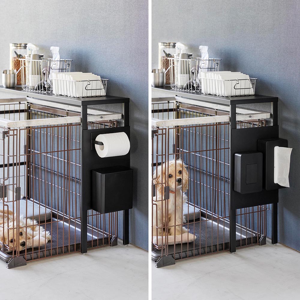 ラックを置く向きに合わせて、左右どちらのフレームにも取り付け可能。「伸縮ペットケージ上ラック タワー(別売)」をもっと便利に活用したい方におすすめのオプションパーツです。