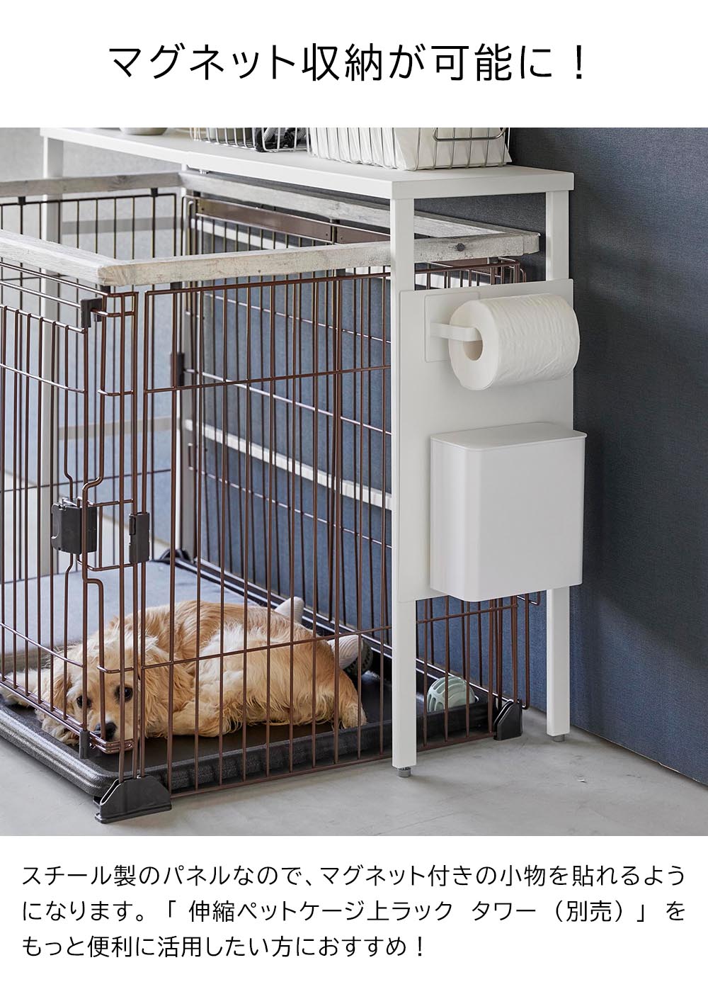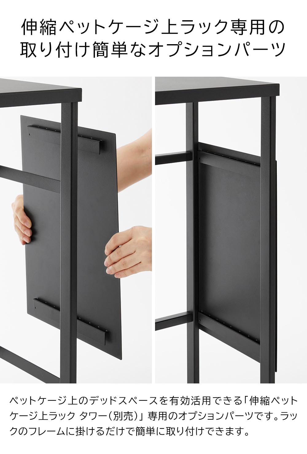 ペットケージ上のデッドスペースを有効活用できる「伸縮ペットケージ上ラック タワー(別売)」専用のオプションパーツ。ラックのフレームに掛けるだけで簡単に取り付けできるスチール製のパネルです。マグネット付きの小物を貼れるようになり、ラックの使い勝手がアップします。