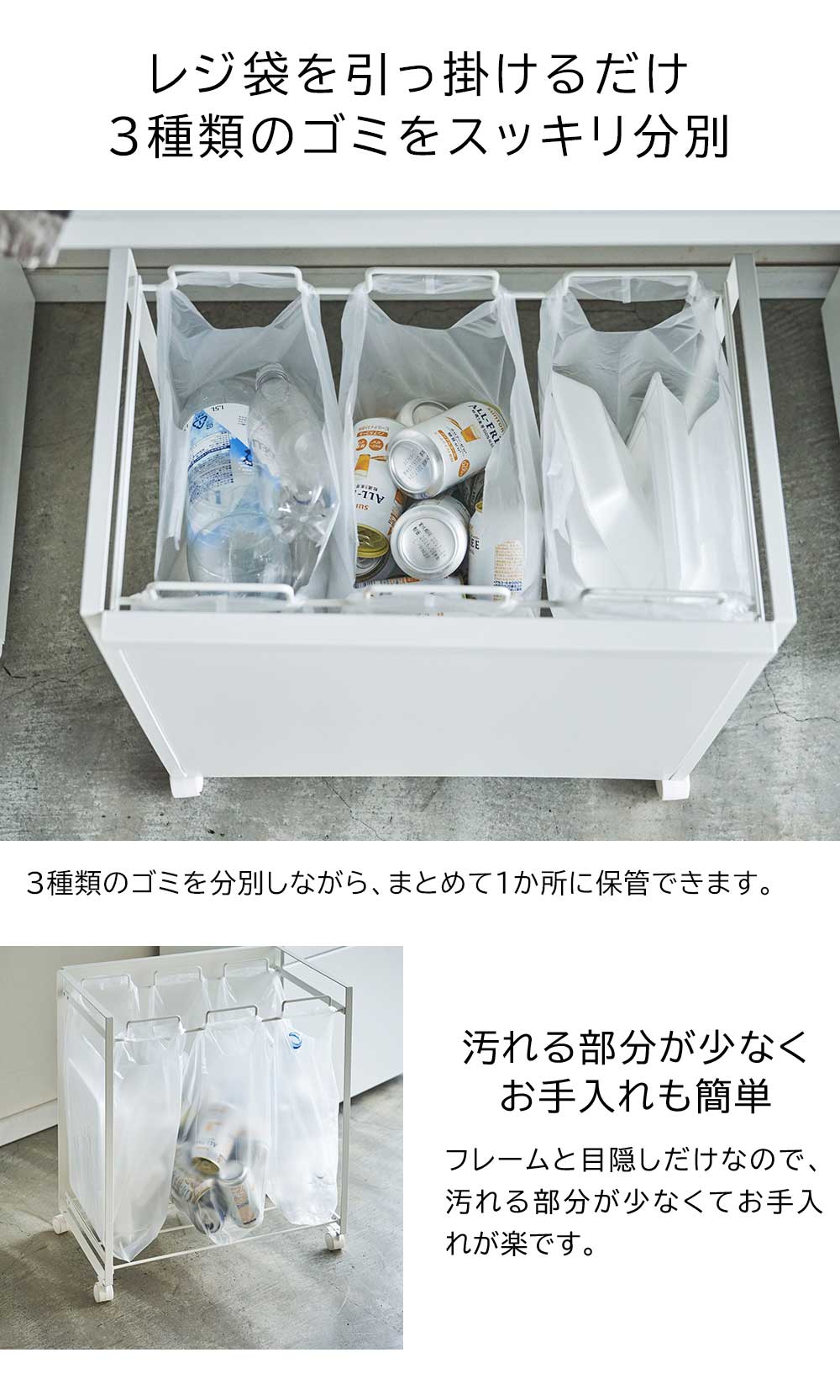レジ袋を隠して3分別できる スーパーやコンビニのレジ袋がそのままゴミ箱になるダストワゴンです。3つの袋が掛けられるので分別にピッタリ。ゴミを隠してくれる目隠しがあるので生活感を感じさせず、見た目もスッキリします。キャスターとハンドル付きなので、お掃除やゴミ捨てなどの際も楽に動かせて便利です。 ![]() ![]() ![]() ![]() ![]() ![]() ![]() ![]() ![]() |