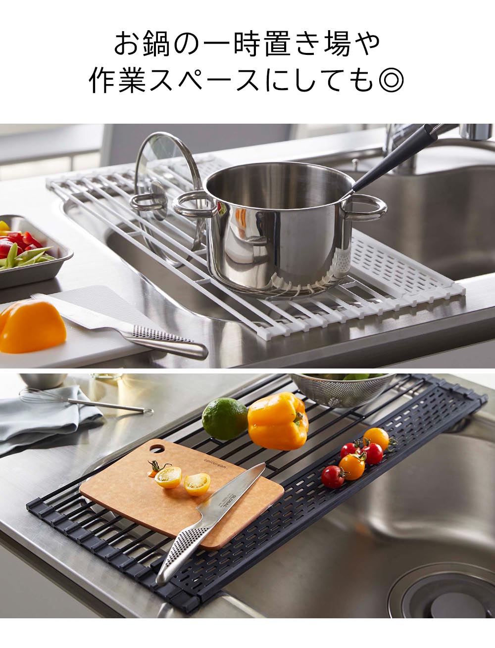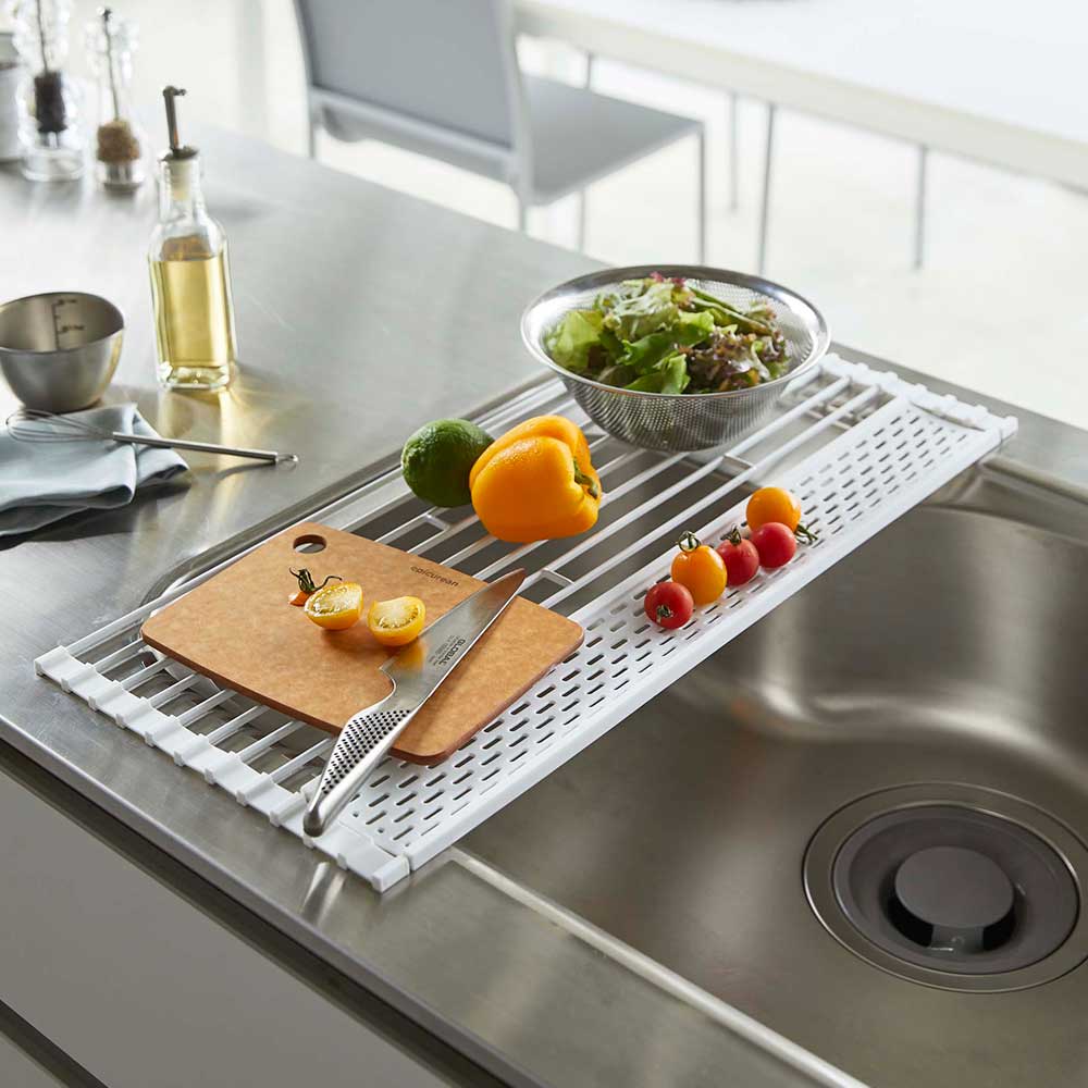 クルッと巻いて 使わない時はコンパクトに畳める水切りです。調理スペースが足りない方や、生活感のある水切りを隠してキッチンをスッキリさせたい方などにオススメ。使いたいサイズに折り畳んでスリムに使うことも可能です。トレー付きなので、お箸やカトラリー、ピックなどの小物も収納できます。また、お鍋の一時置きや調理スペースとしても使用できるので、キッチンで使えるスペースが広がりとっても便利です。 ![]() ![]() ![]() ![]() ![]() ![]() ![]() ![]() ![]() ![]() ![]() |